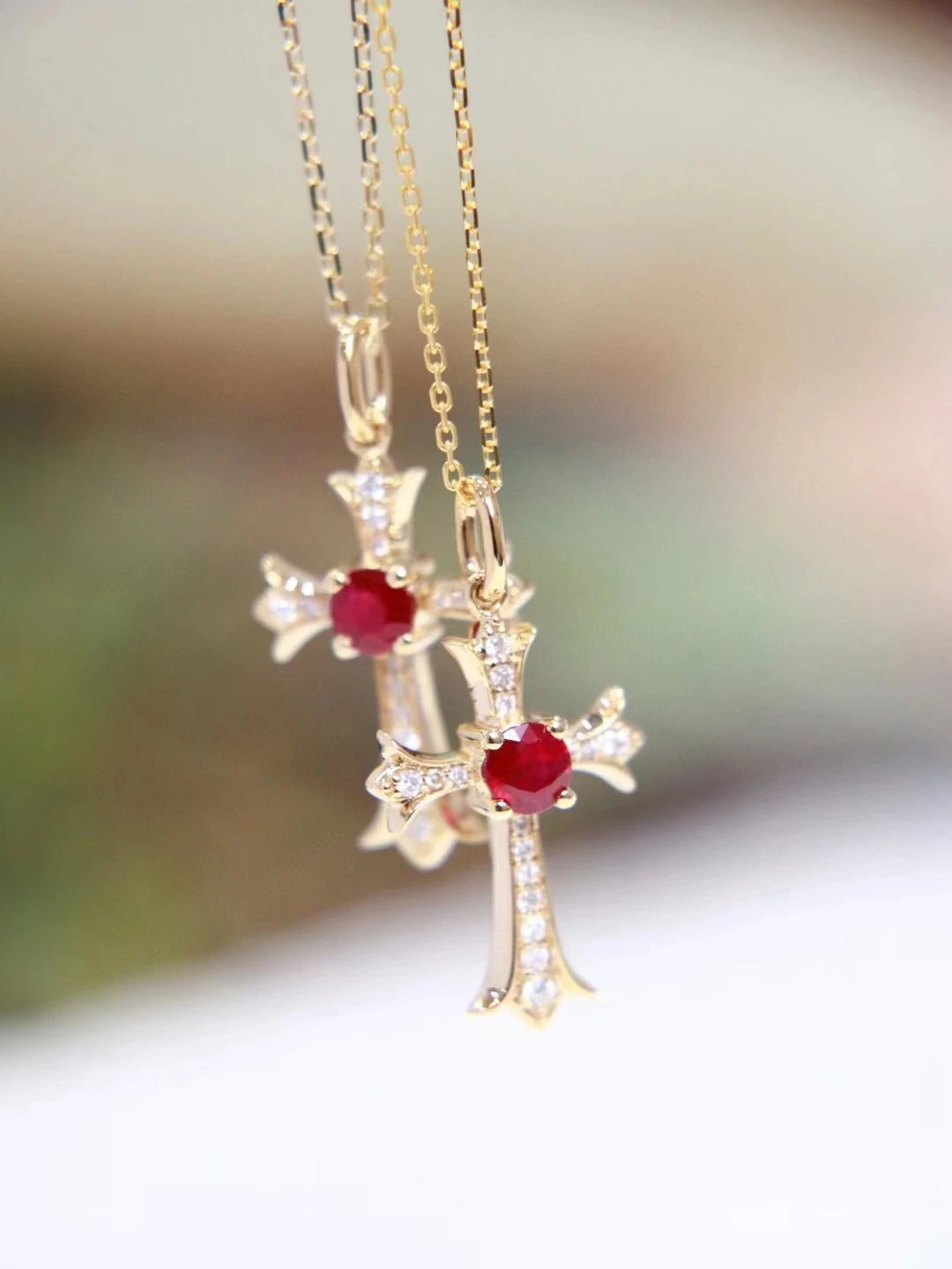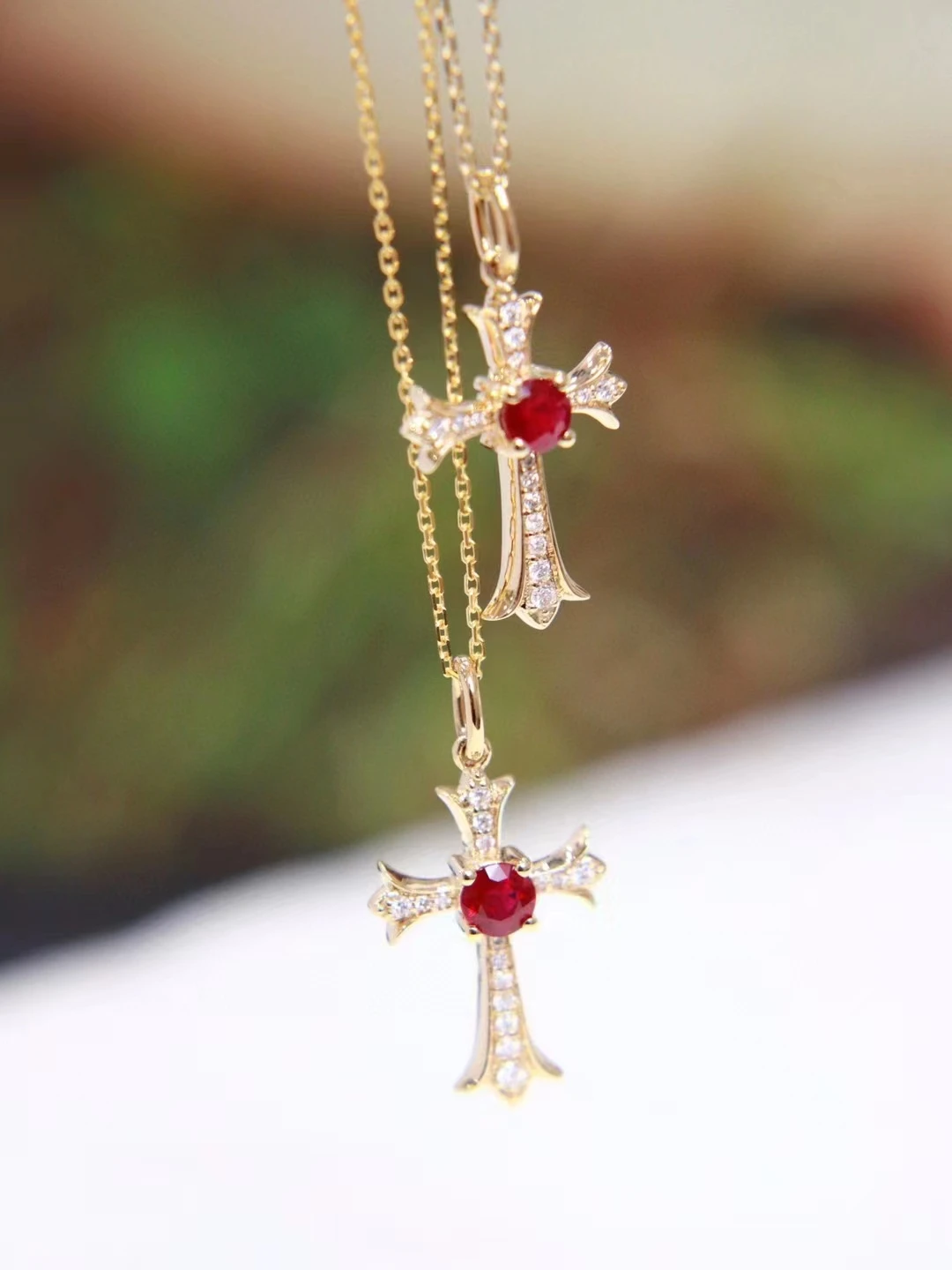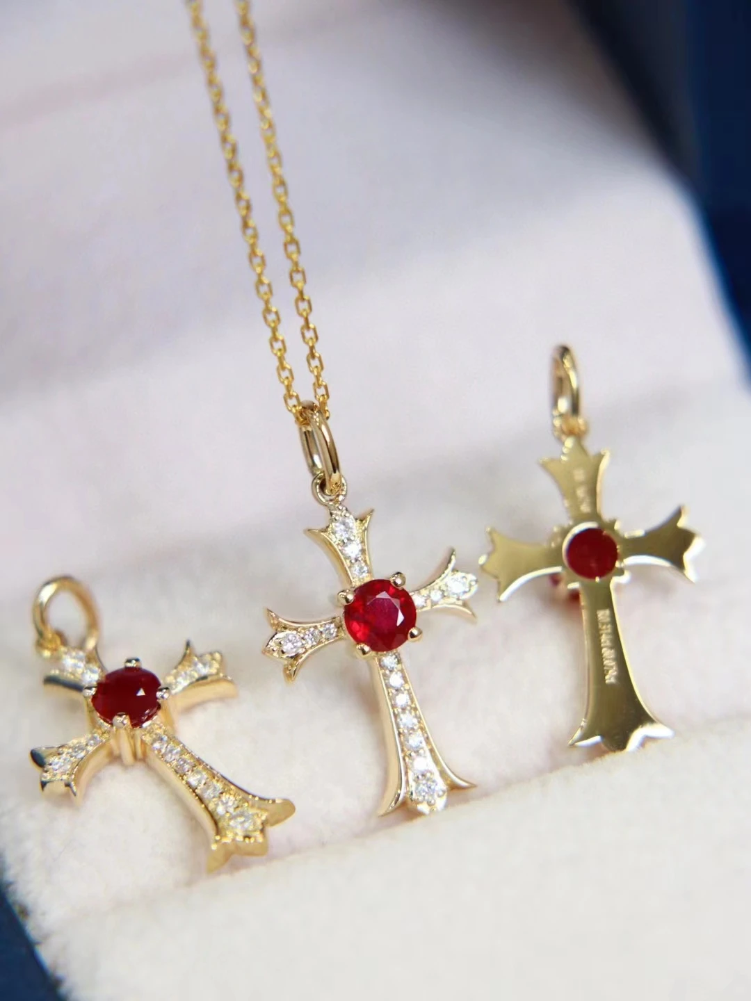 18K Gold Cross Pendant Natural Ruby Diamond Moissanite Jesus Hiphop Birthstone Necklace Pendants Charms