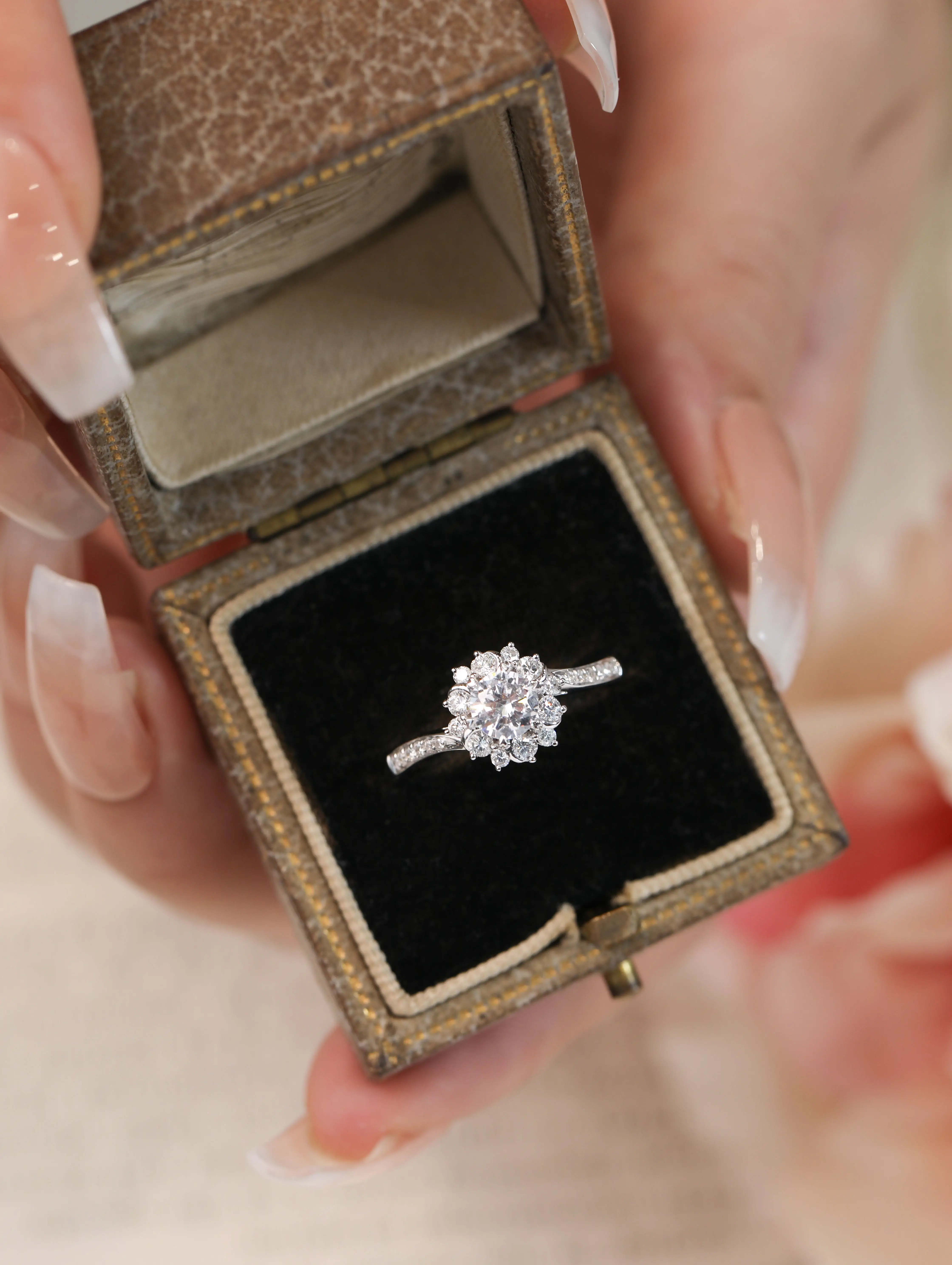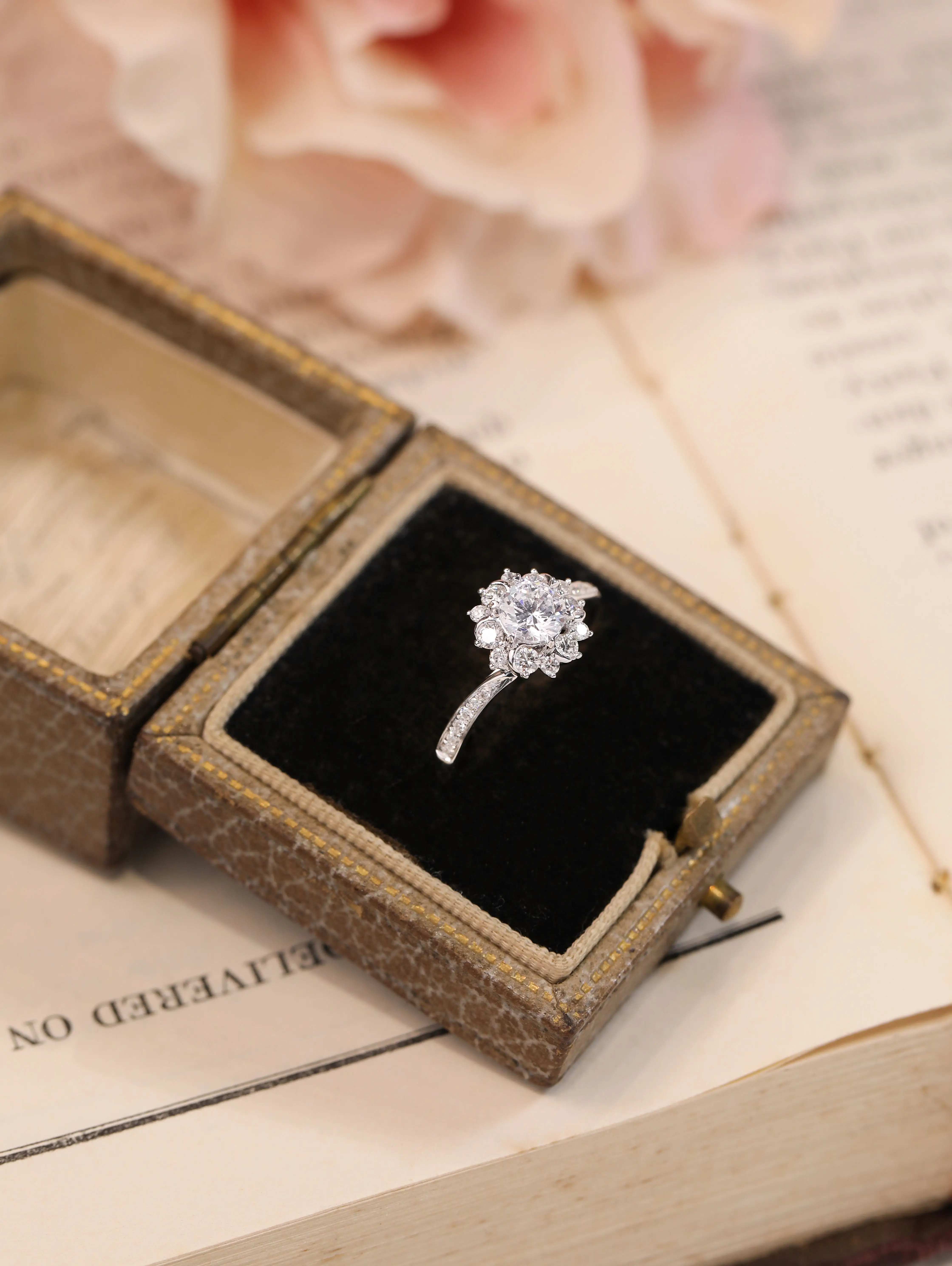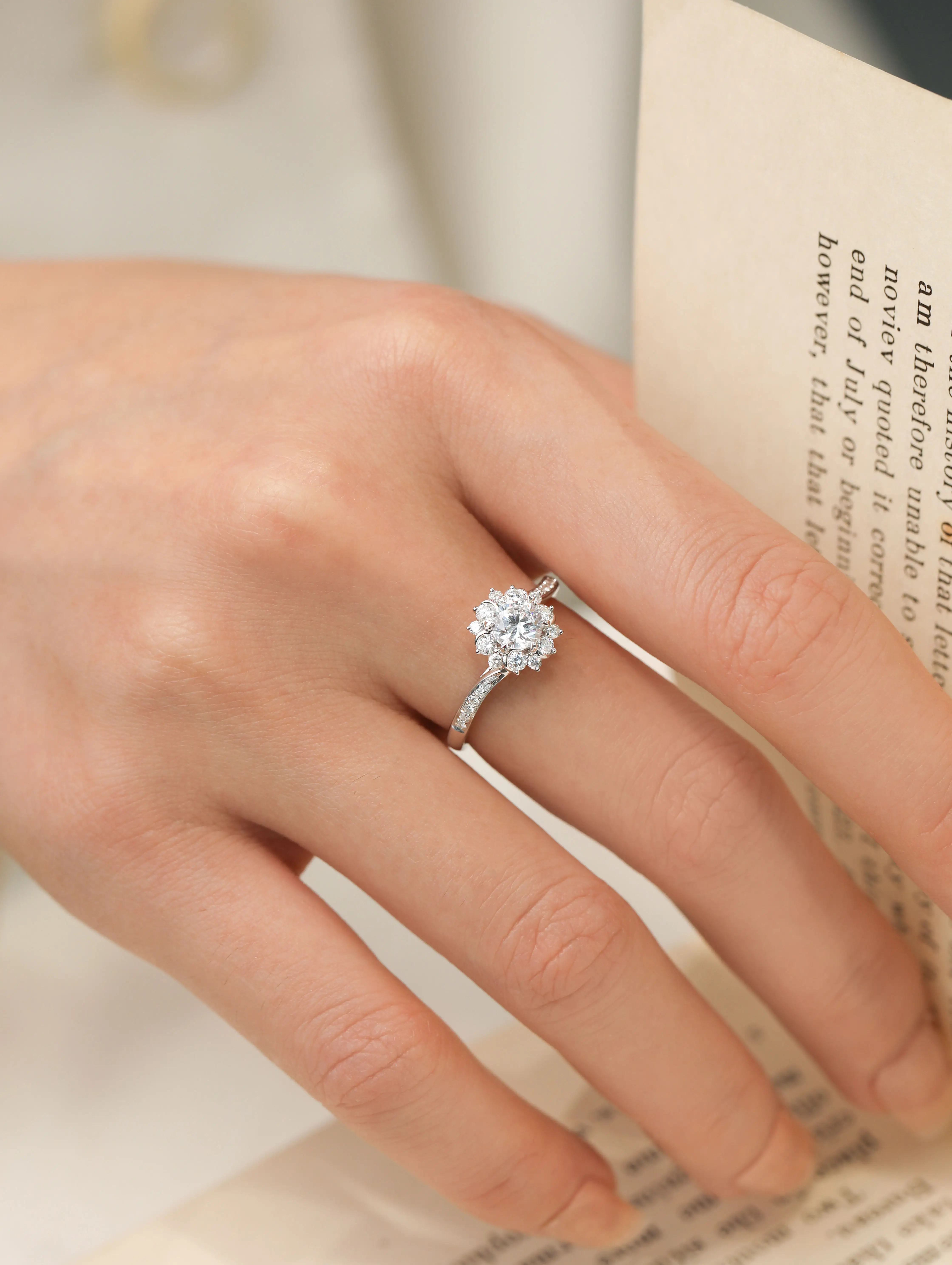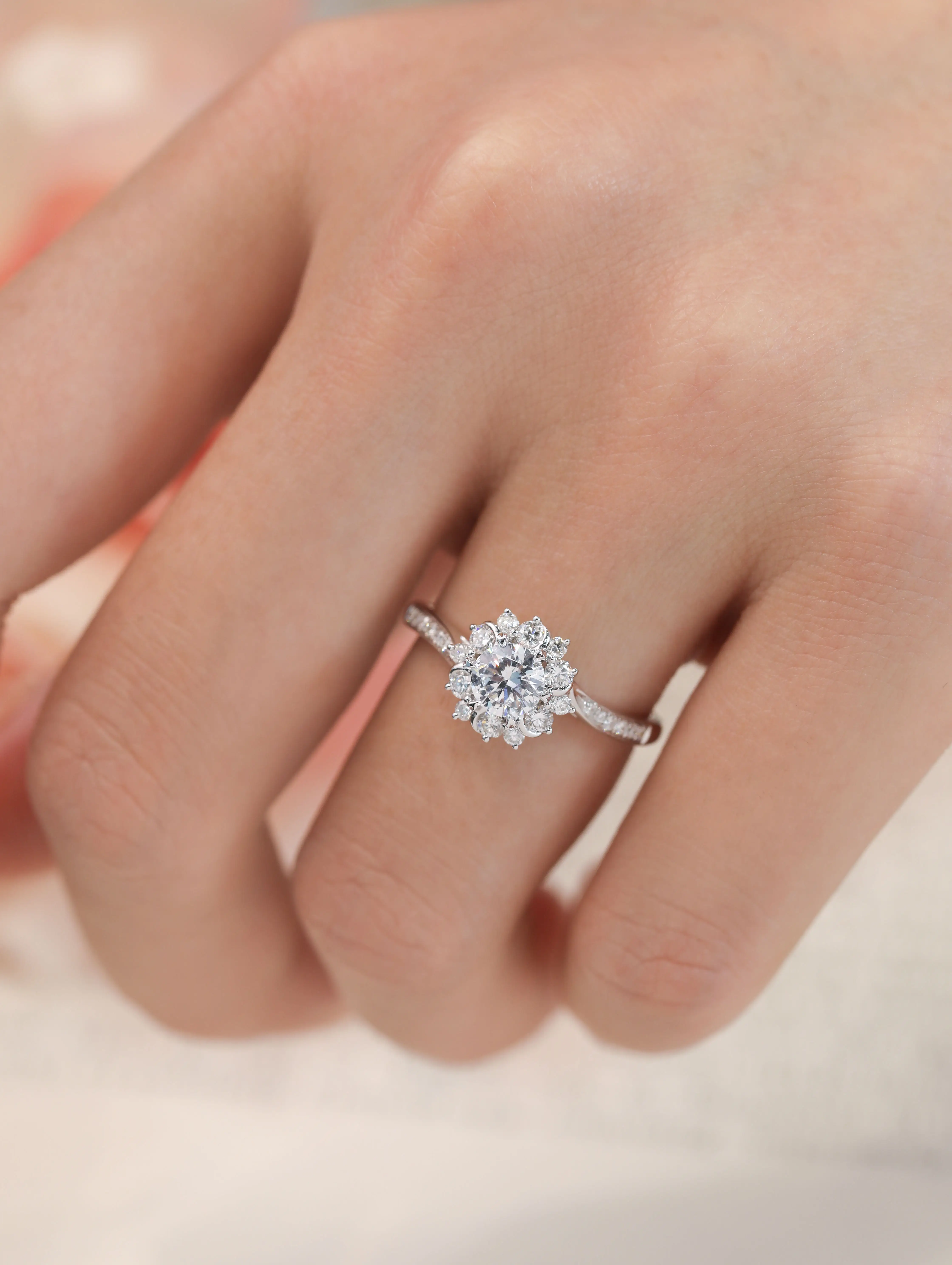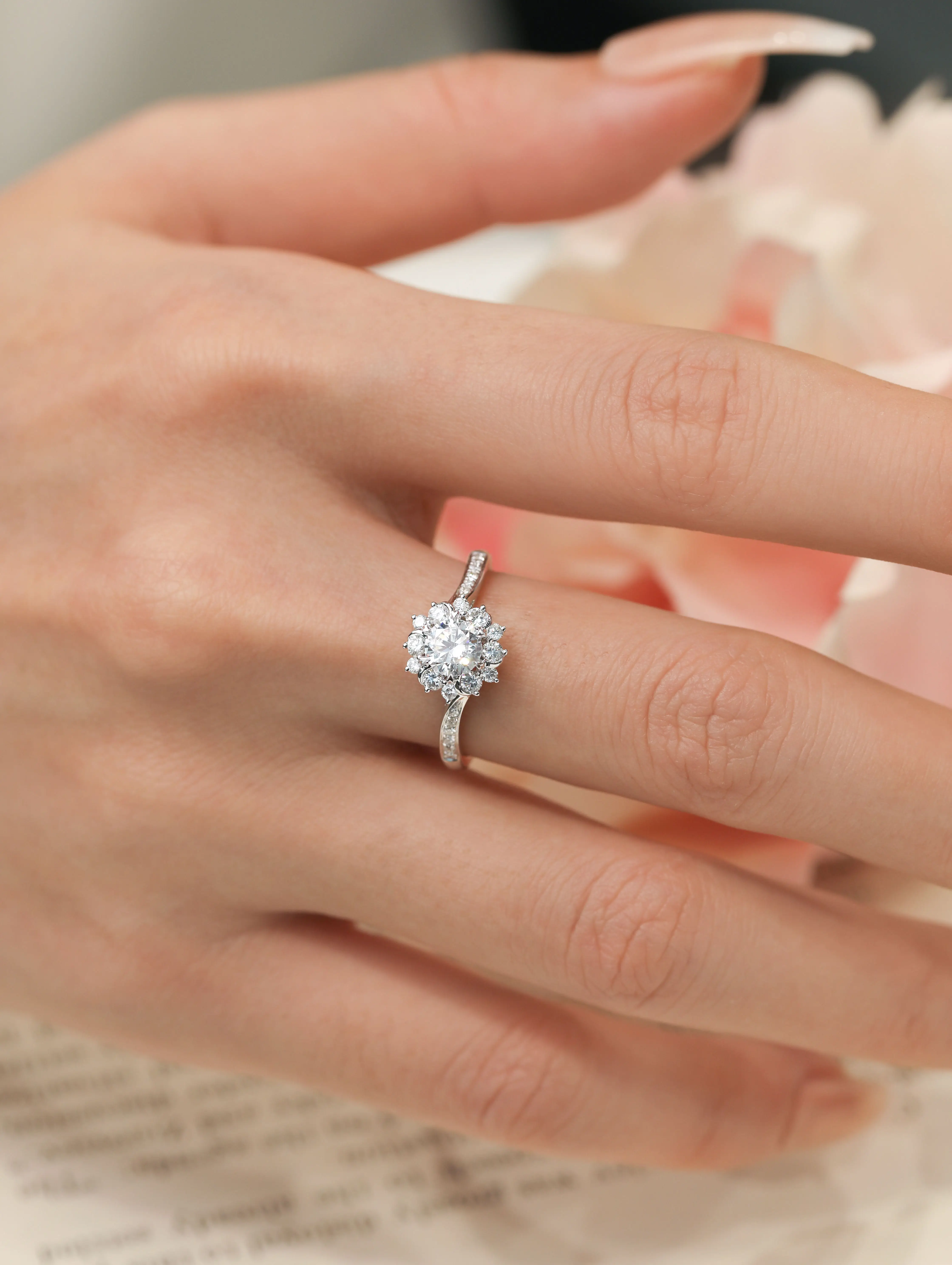 18K Solid White Gold Natural Diamond Ring Love Ring with Floral Design Gift for Couples