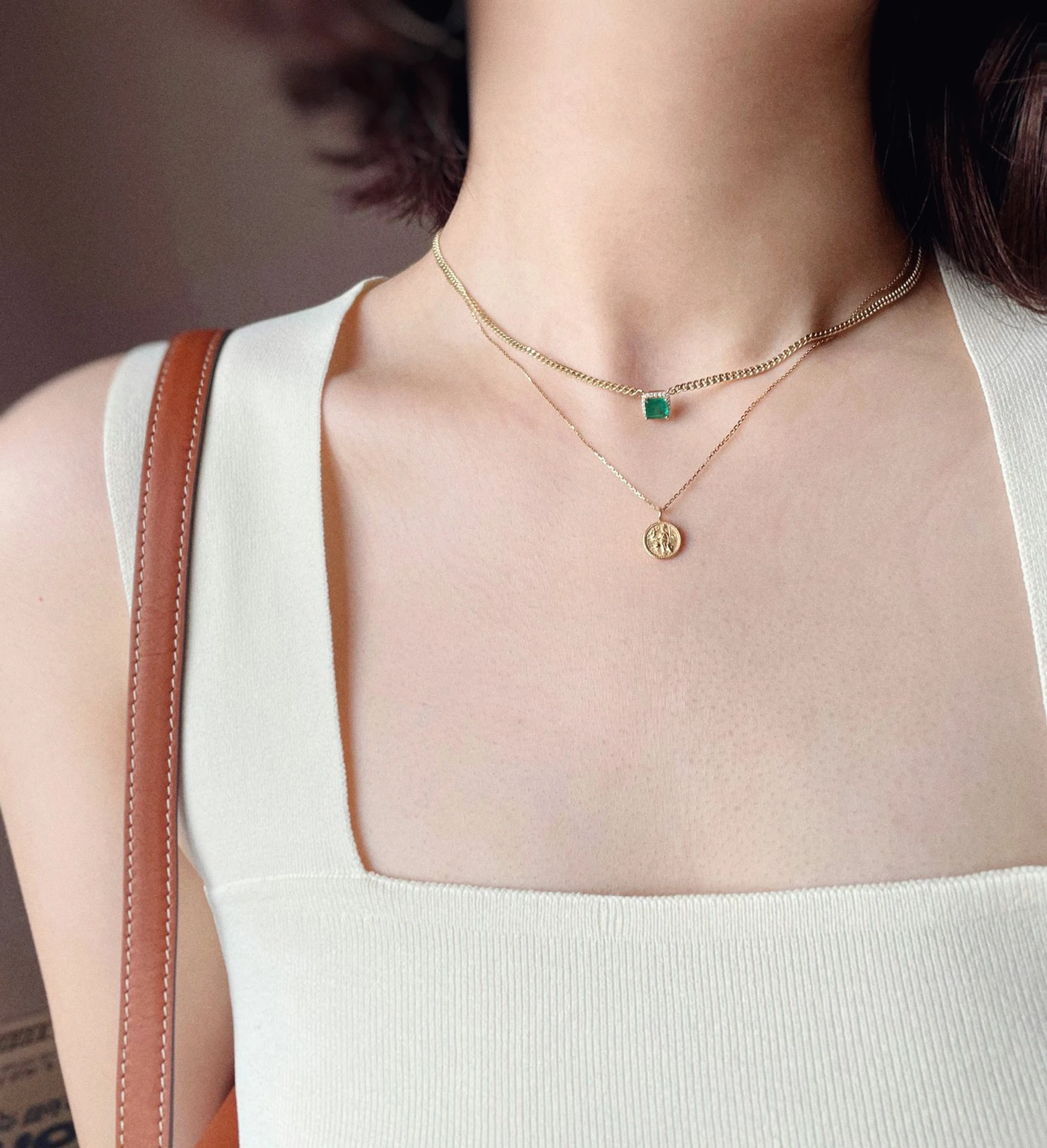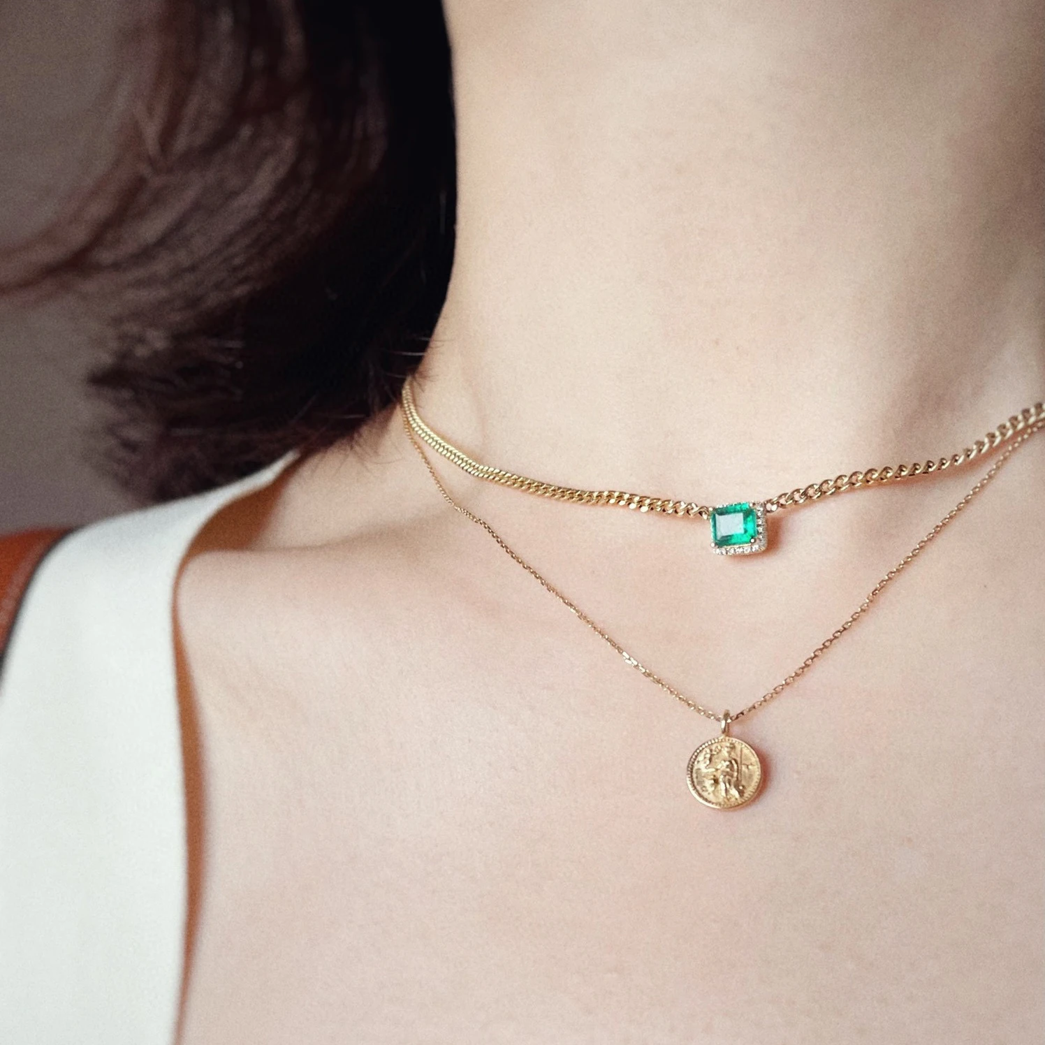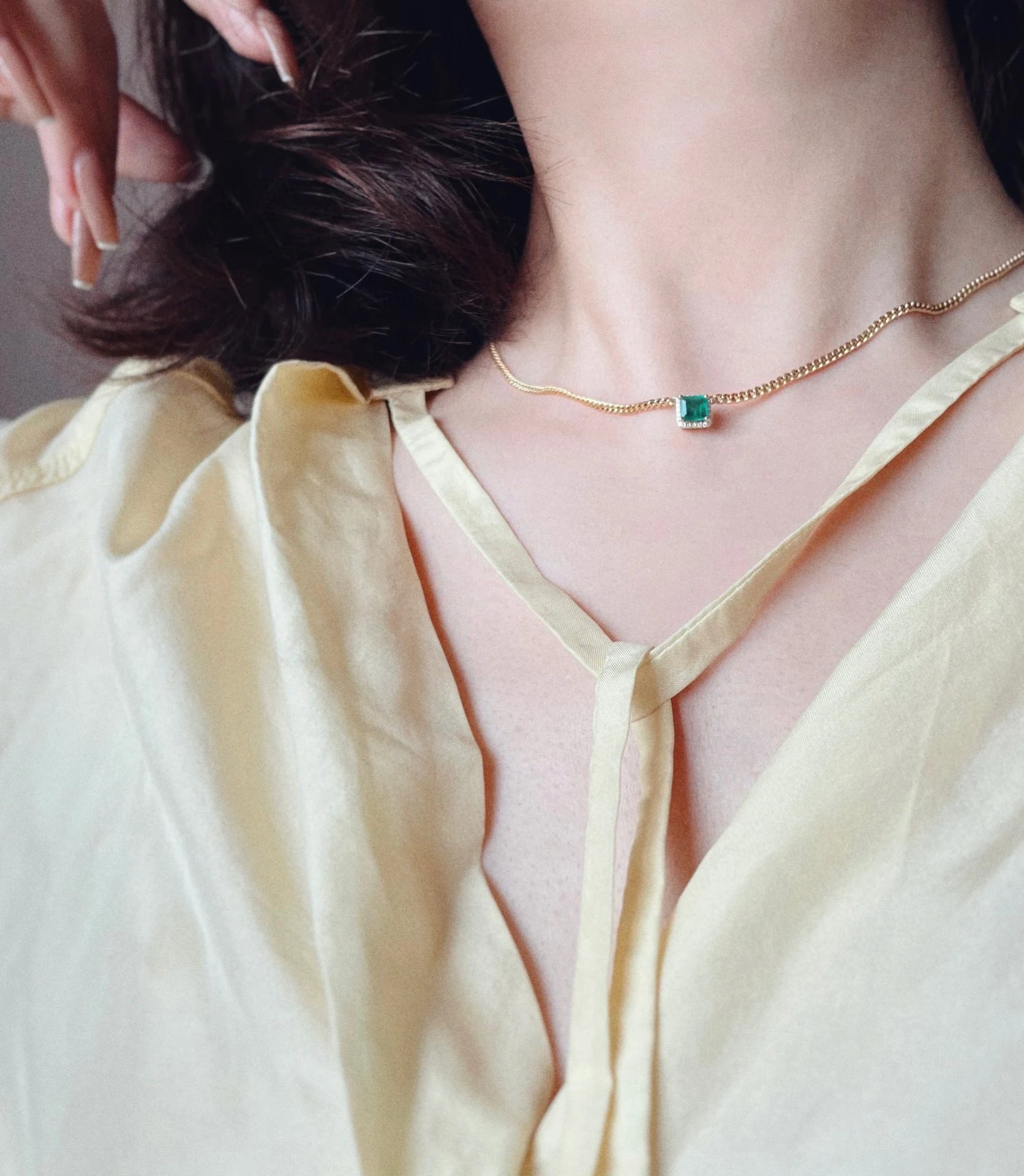 2025 Elegant 18K Solid Yellow Gold Green Natural Emerald Diamond Gemstone Pendant Necklace Fine Jewelry for Women Girl for Gift