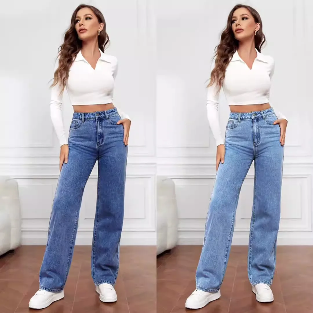 2025 Fashion New Women's High Waist Washed Pure Color Long Casual Basic Straight Leg Long Jeans