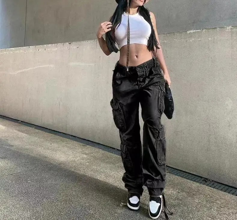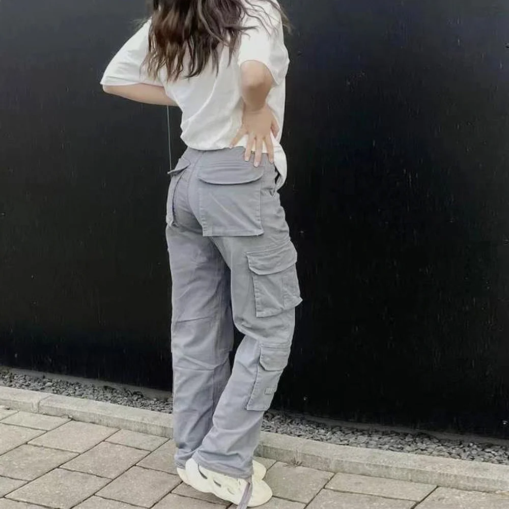 2025 Girls Fashion Loose Cotton Straight Pants Street Hip-hop Outwear Front Pocket Long Overalls Trousers Women's Clothing