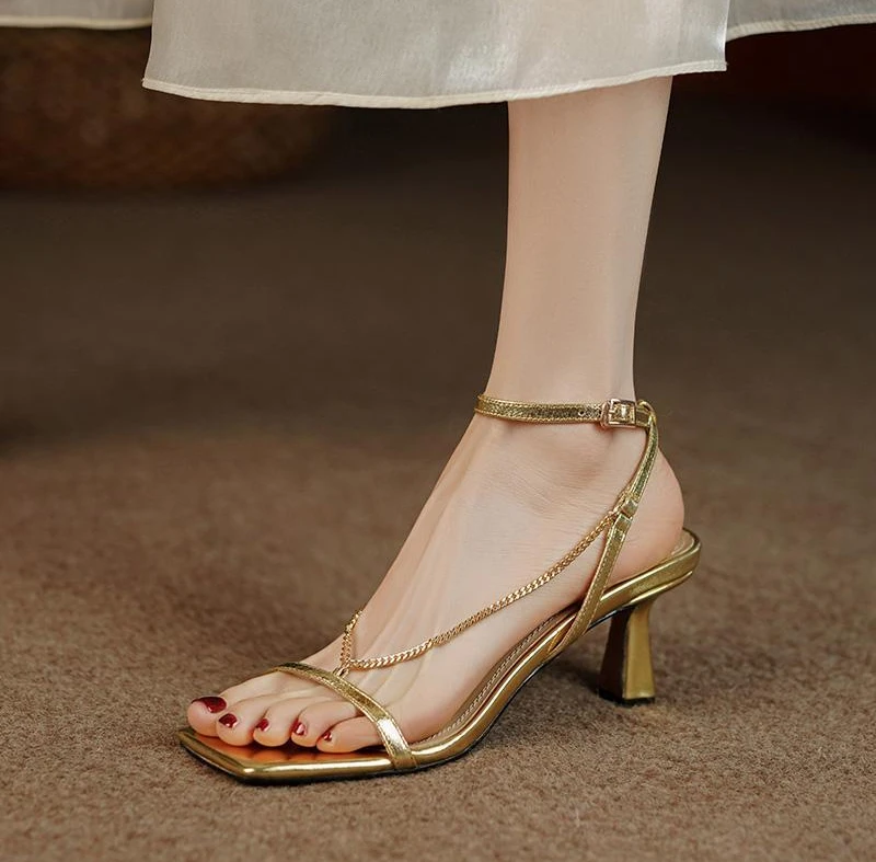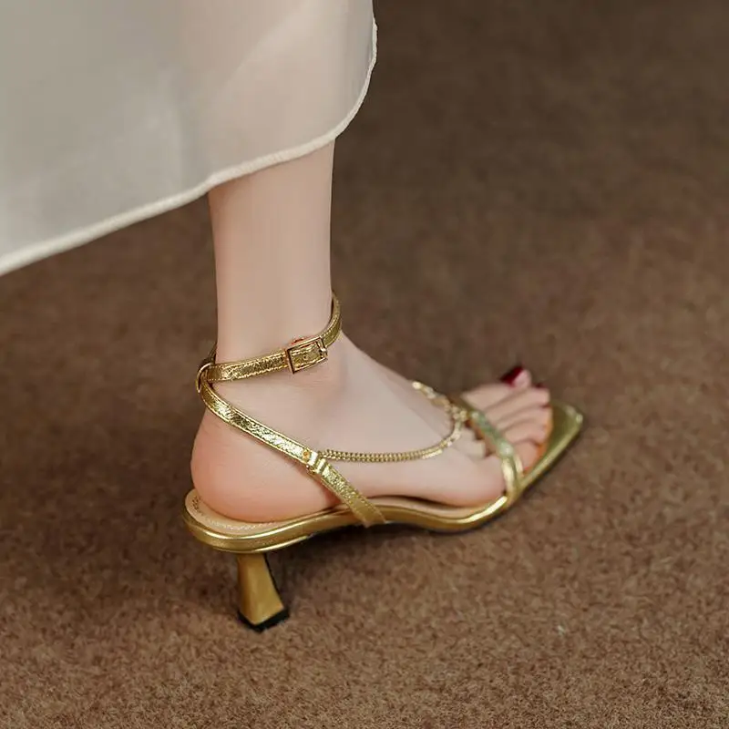 2025 High Heels Shoes for Women Gold Elegant Sandales Femme Fashion Streetwear New High Quality High Heel Sandals