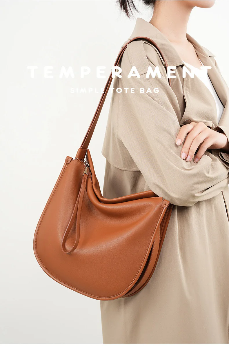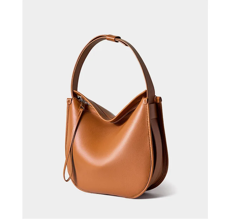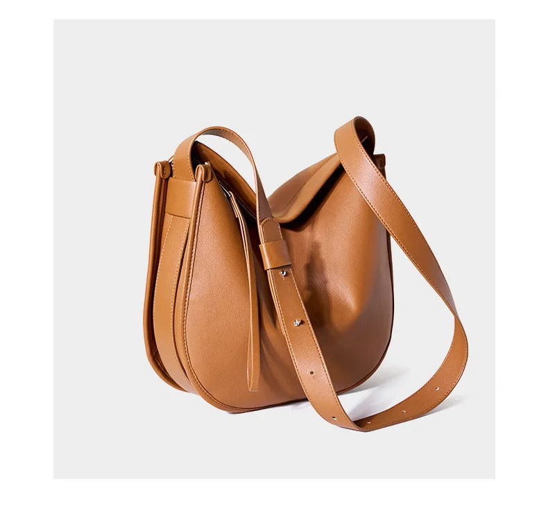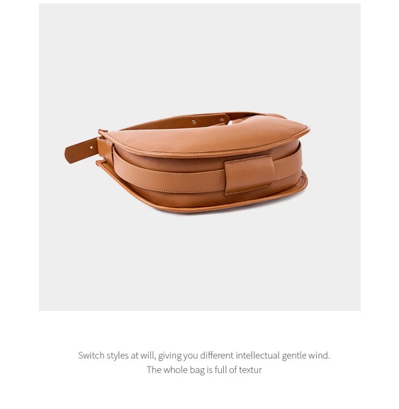 2025 Ladies Handbag Women Large Color Contrast Women Real Leather Crossbody Purse Half Moon Bag