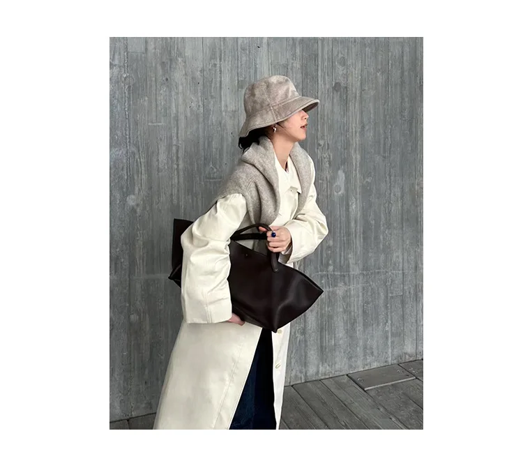 2025 New Arrival Women's Retro Cow Leather Large Capacity Shoulder Bag Vintage Style Fashionable Simple Lady Handbag