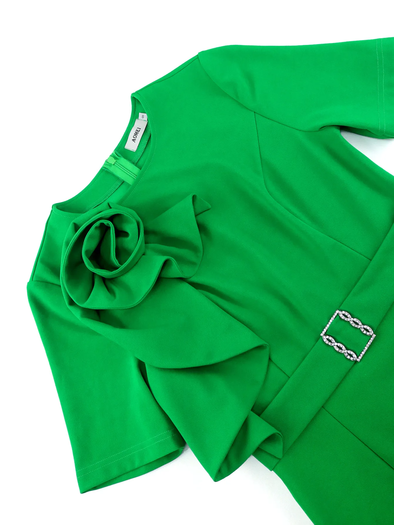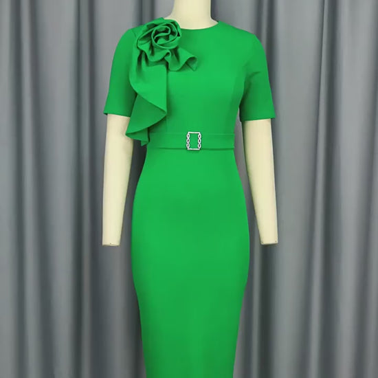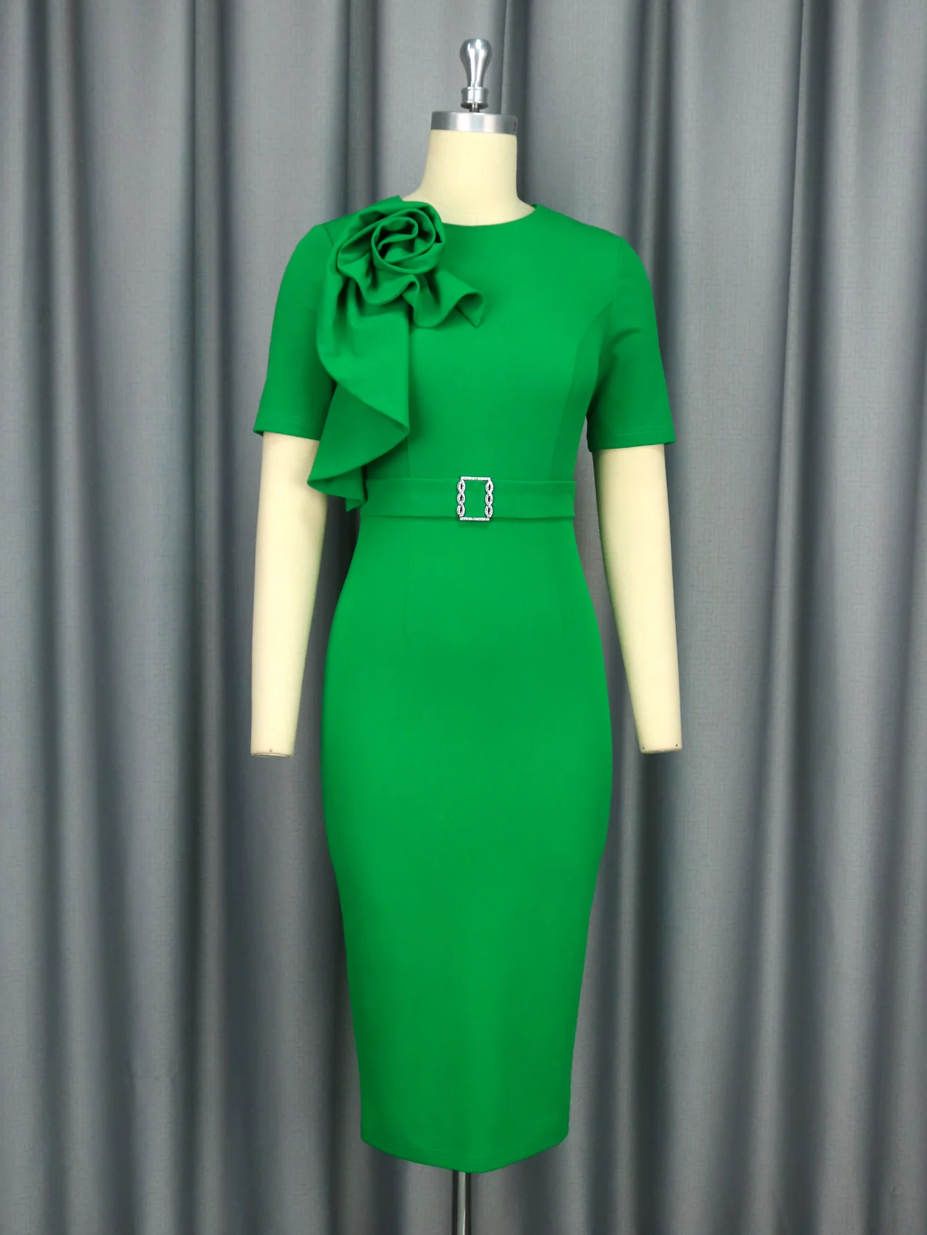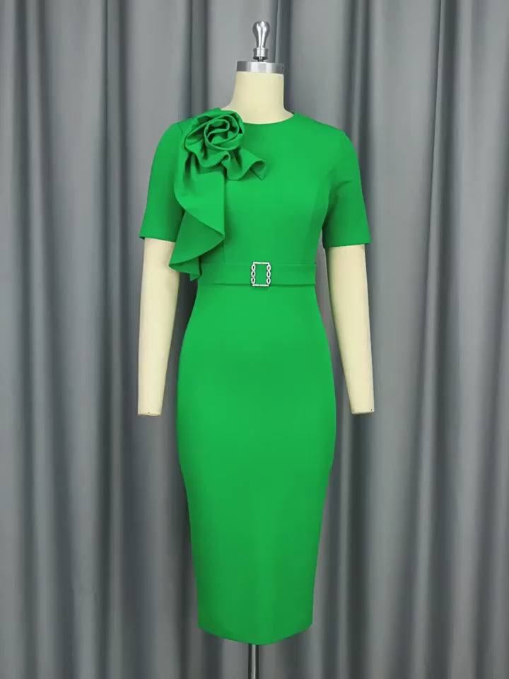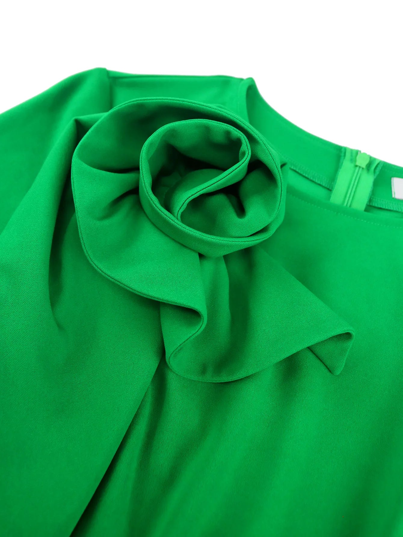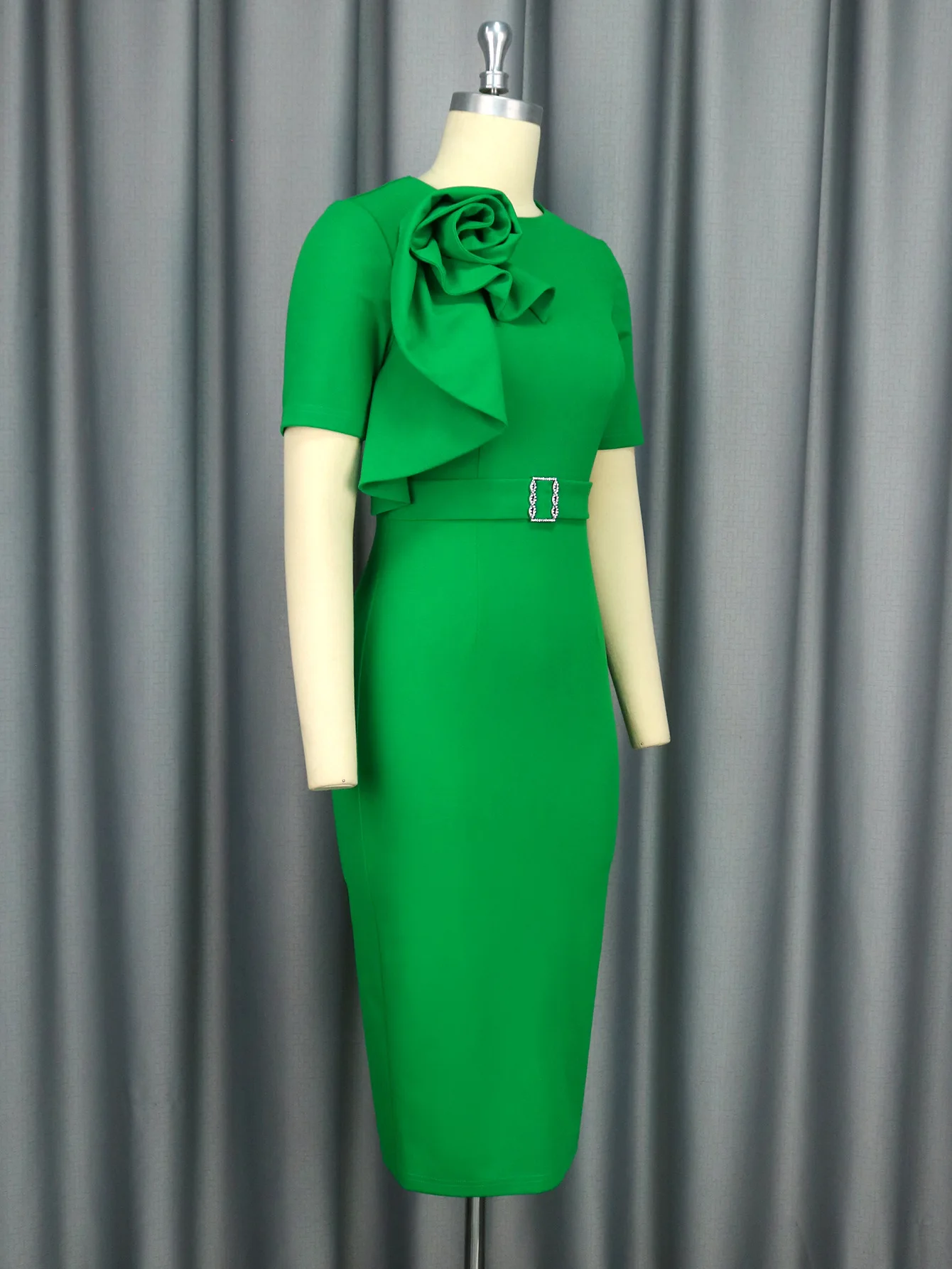 2025 New Women's 3D Floral Applique Dress - Plus Size Evening Gown High Waist Cocktail Party Dress with Elegant A-Line Skirt