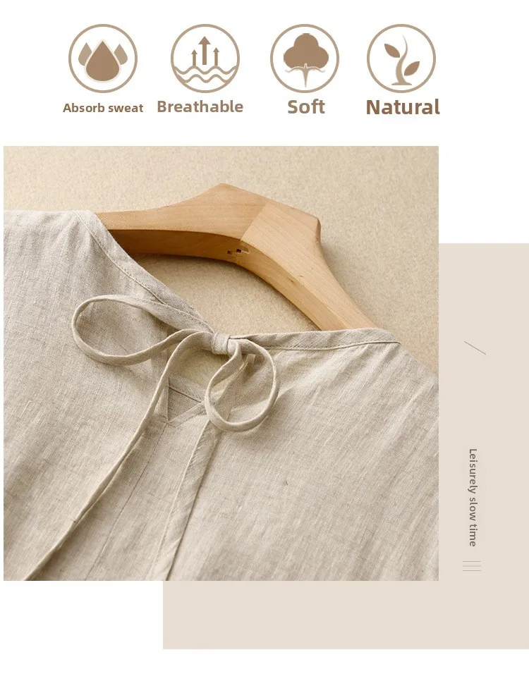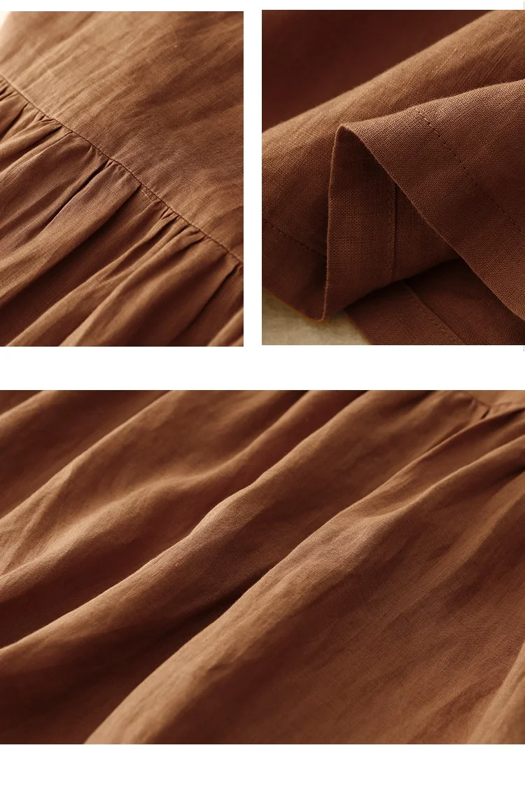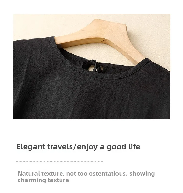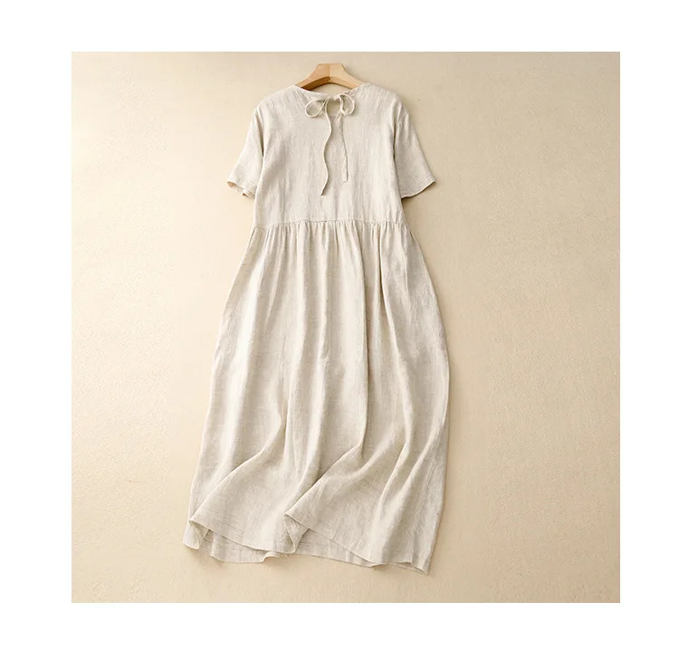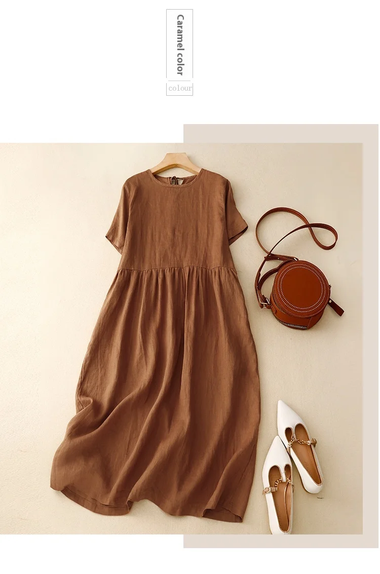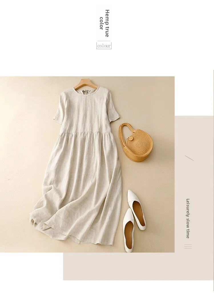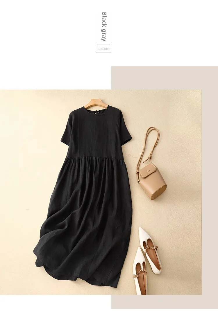 2025 Summer New Simple and Elegant Cotton Dress Artistic O-neck Short Sleeve Large Swing Long Dress
