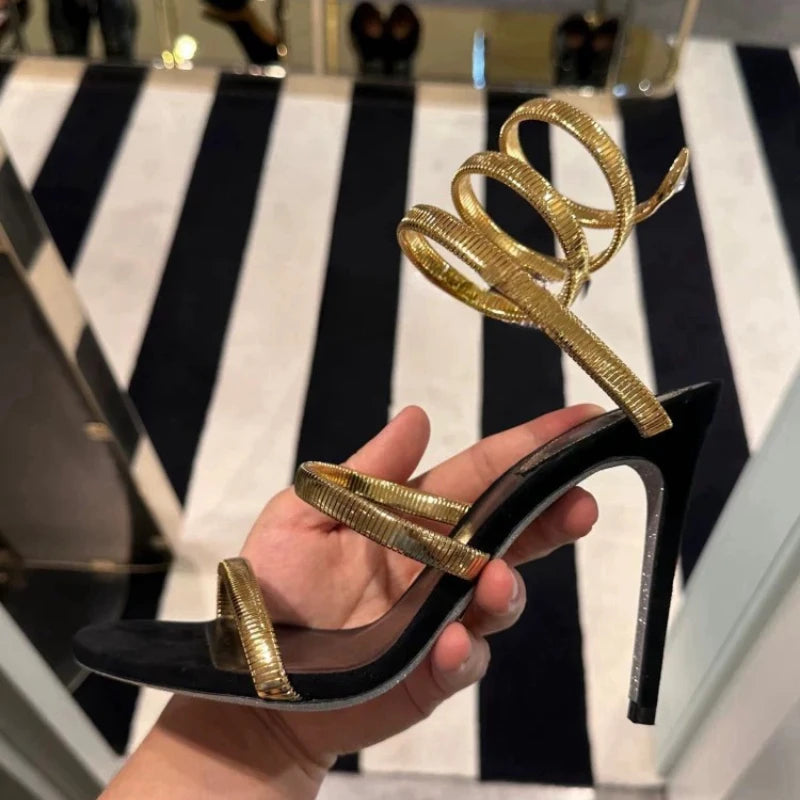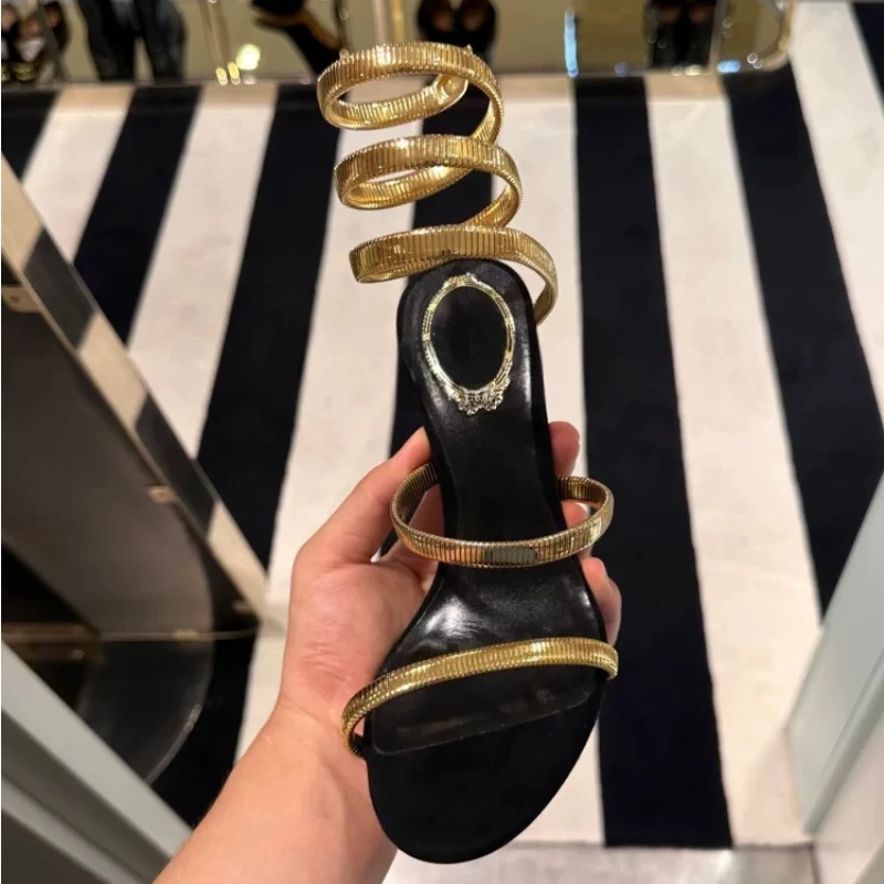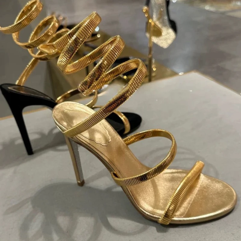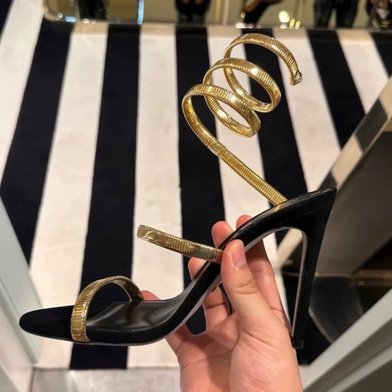2025 Talon Snake Strap Silver Sole Summer Ankle Wrap Around Spiral Heels for Lady