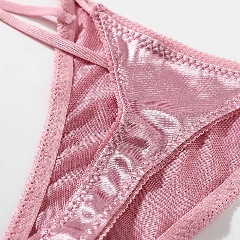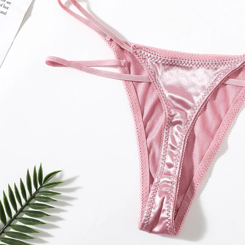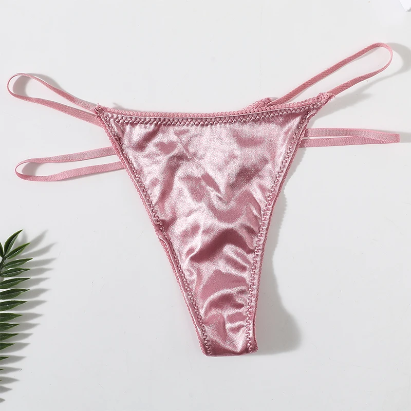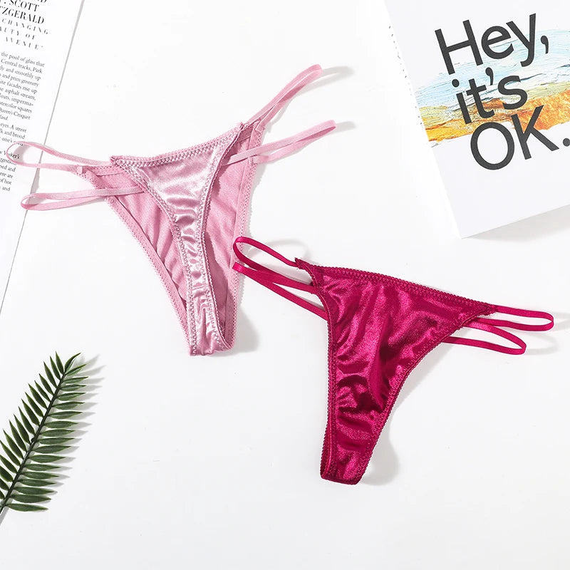 2Pcs/Set Women Panties Low Waist G-string Satin Underwear Female Underpants Solid Color Panty Sexy Lingerie Thongs