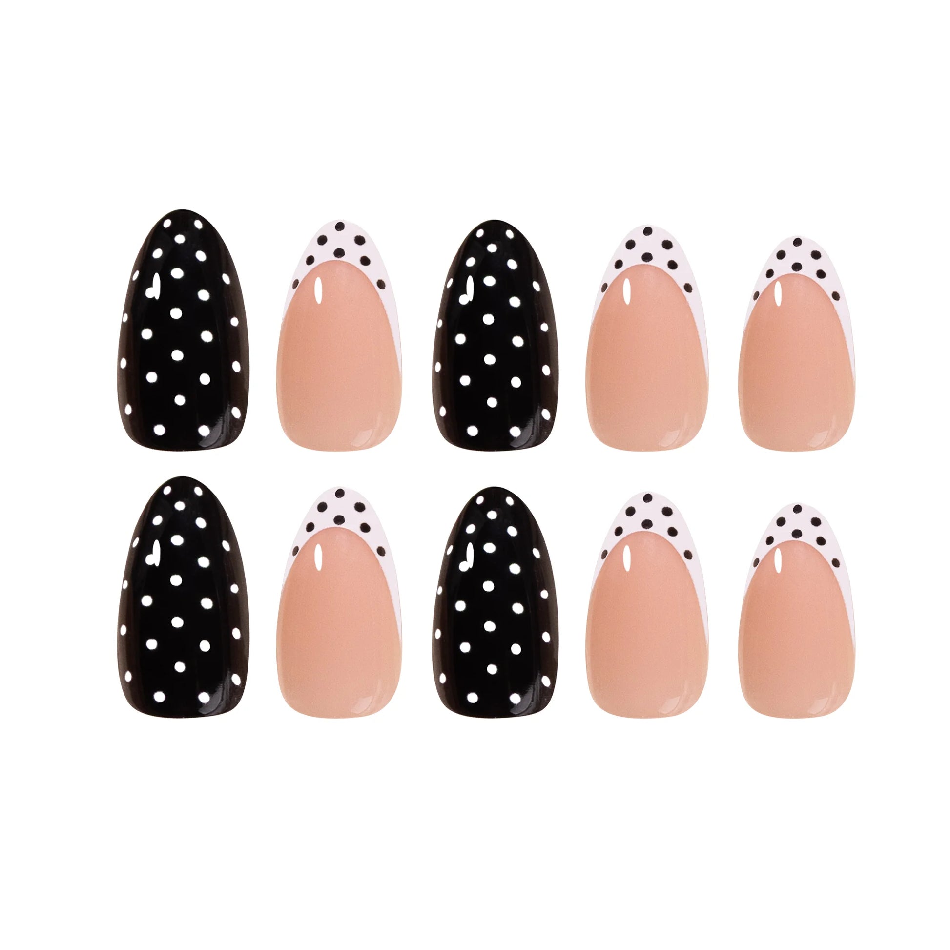 Achieve a flawless, salon-quality manicure in minutes with this 30-piece set of reusable press-on nails, designed for the modern woman who values both beauty and convenience. These OEM-quality nails feature a classic French design with playful polka dot accents, offering a chic and versatile "faux ongle" look. The self-adhesive backing ensures a simple, mess-free application that provides a secure, long-lasting fit, while the durable construction allows them to be worn multiple times. The stylish packaging makes this kit an all-inclusive nail supply solution, providing an instant, elegant transformation for everyday wear or special occasions.