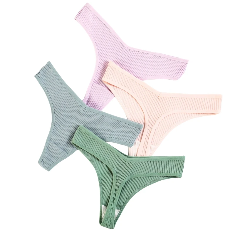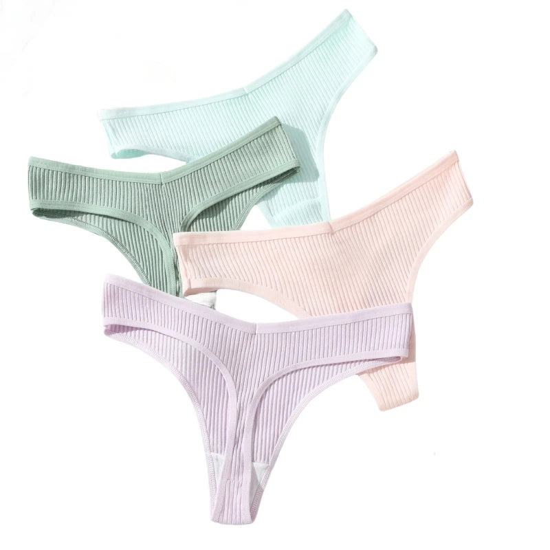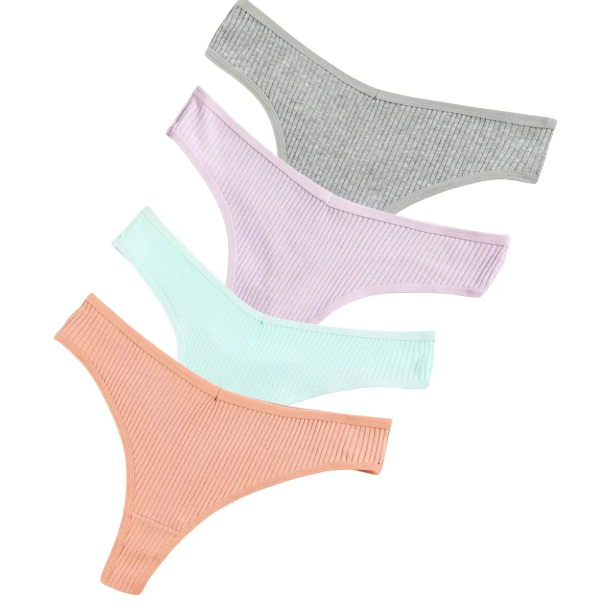 4Pcs/Set Women Cotton Panties Sexy V Waist Thongs M-XXL G-string Female Underpants Solid Color Comfortable Girls Lingerie