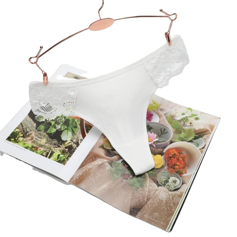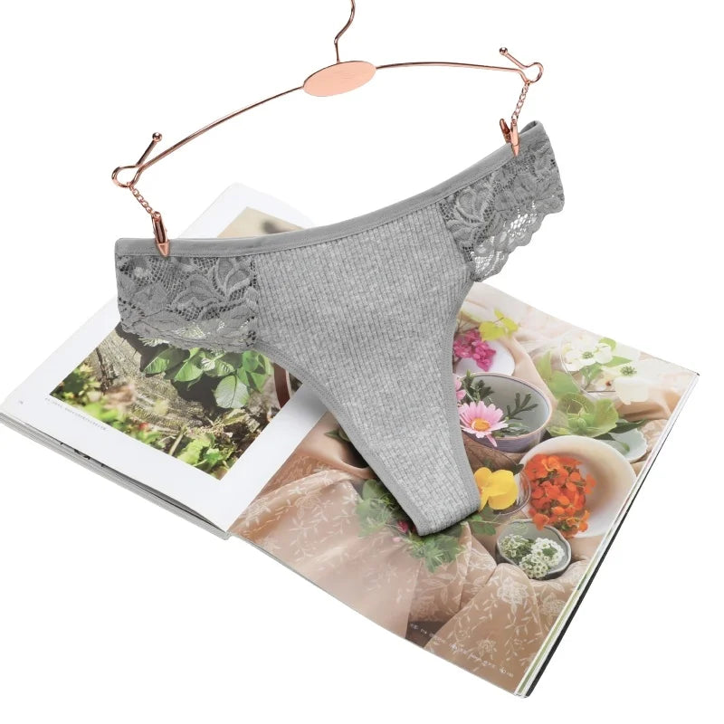 4Pcs/Set Women's Cotton Thongs Sexy Underwear Solid Color Low Waist Panties Breathable Lace Trims G-string Sexy Lingerie