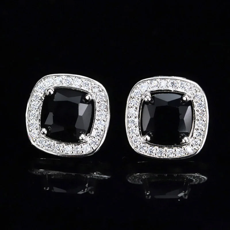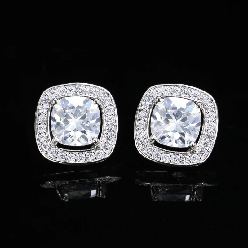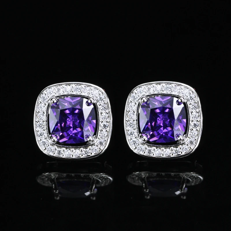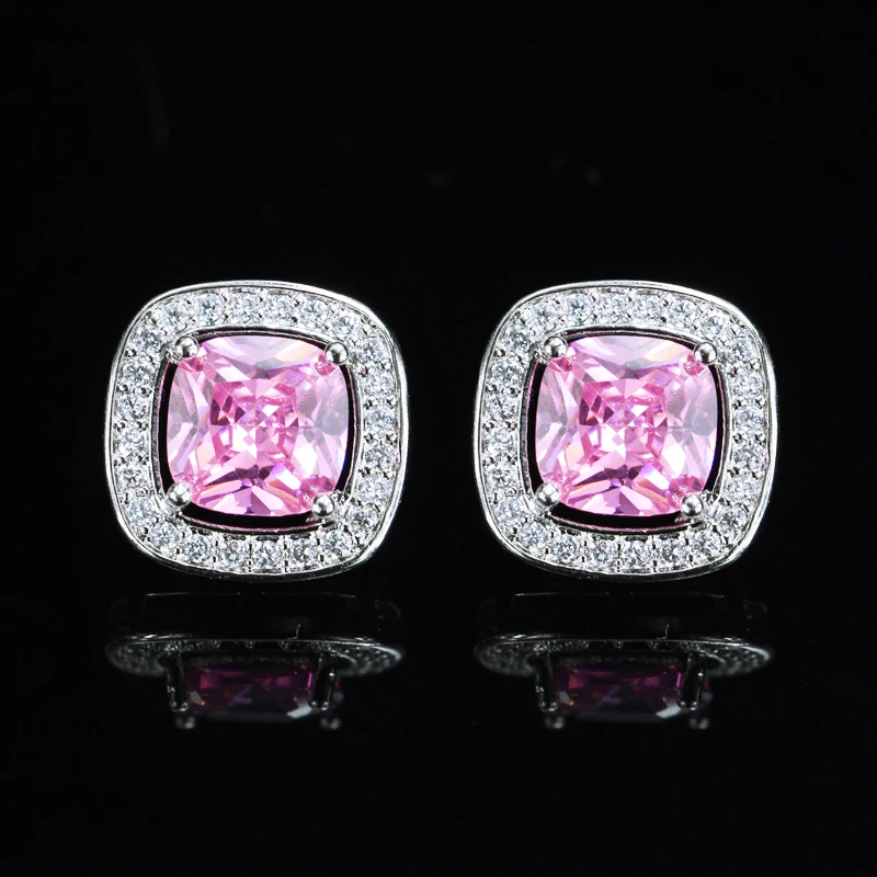 8 Color Options High Quality Square Shaped Cubic Zircon Stone Pink Crystal Fashion Stud Earrings for Women Daily Wear Jewelry