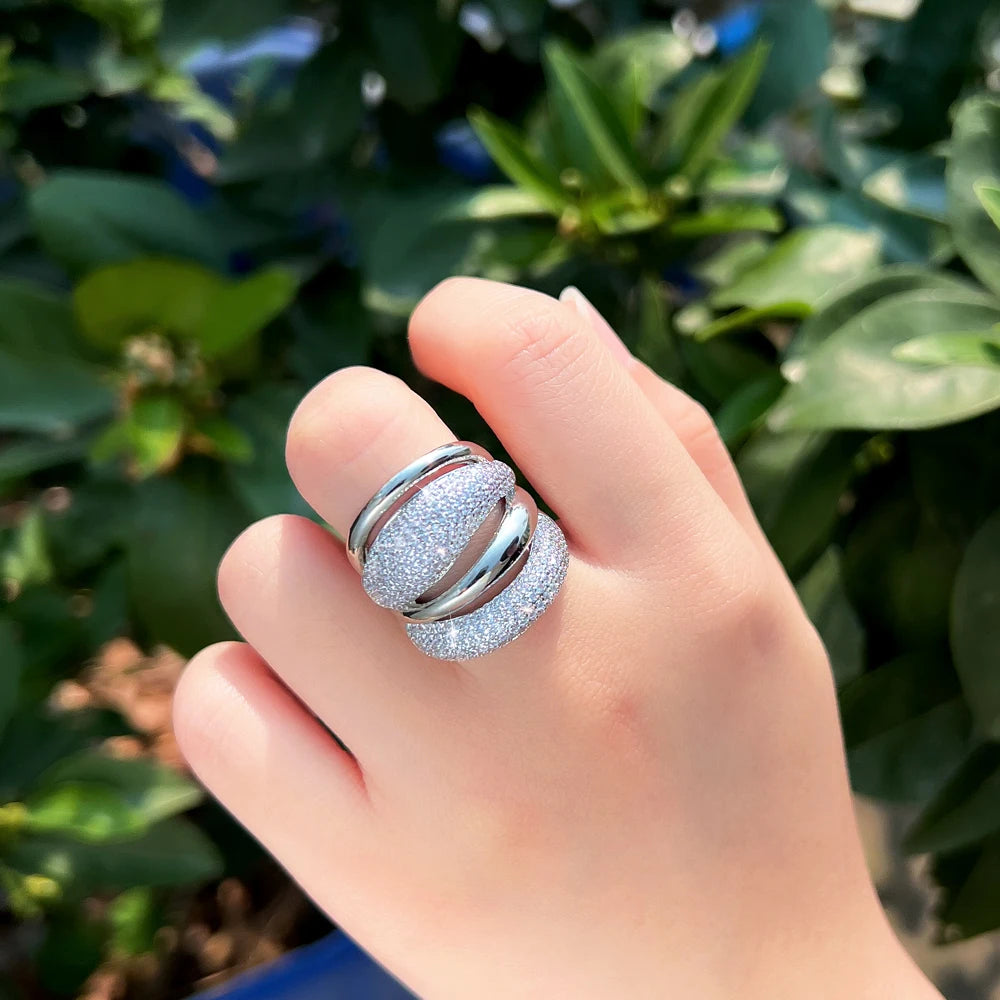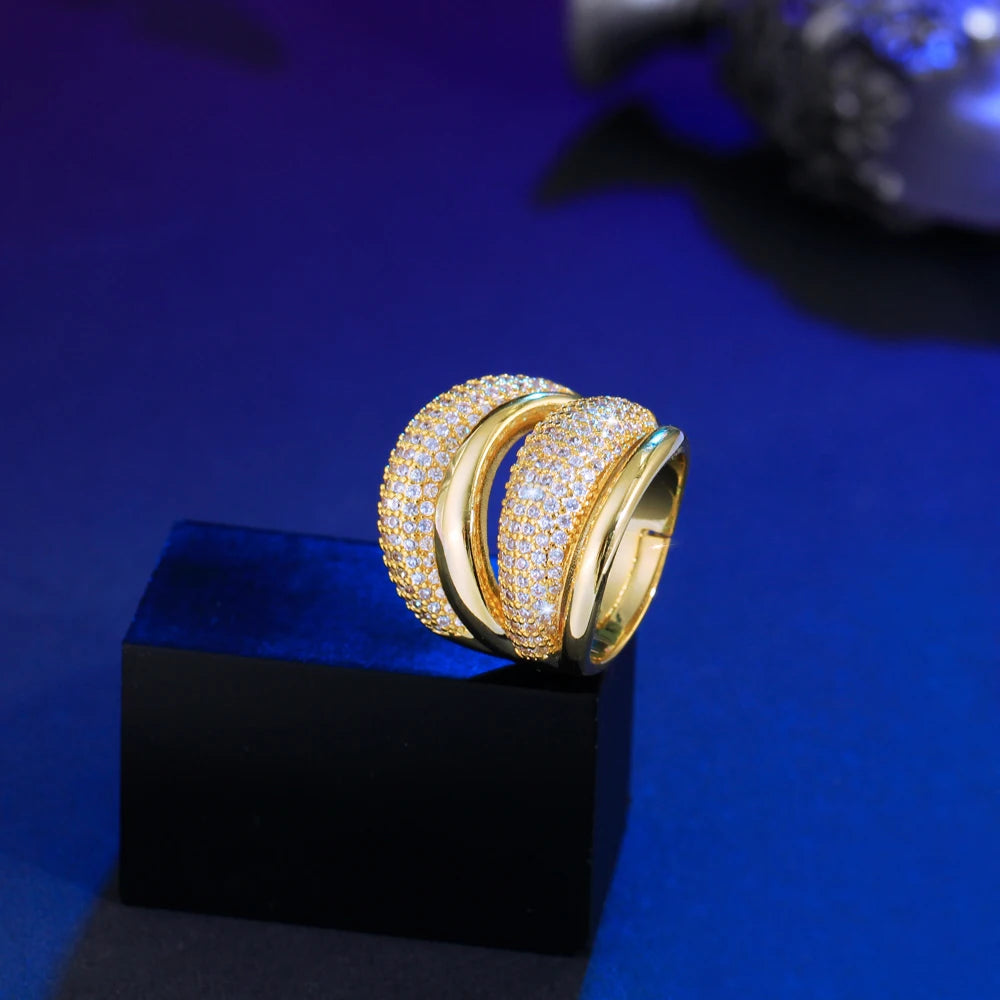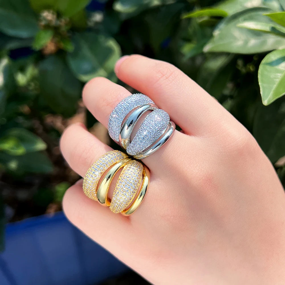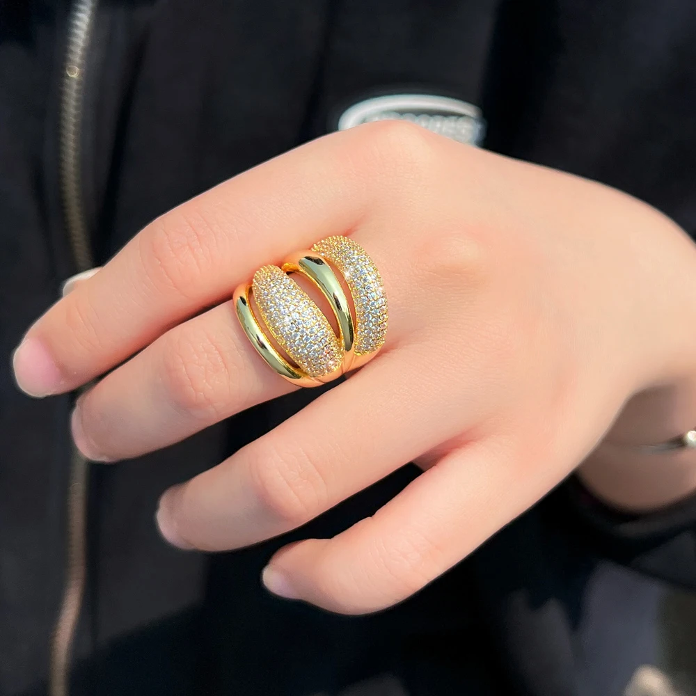Adjustable Cubic Zircon Bold Big Statement Rings for Women Luxury 18k Gold Plated Bridal Engagement Wedding Jewelry