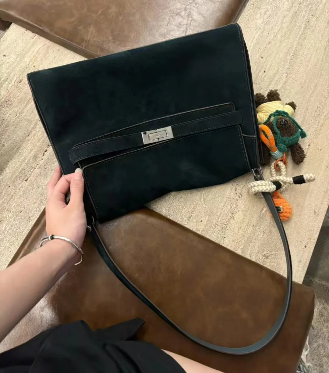 Advanced Suede Armpit Bag Doublelee Frosted Cowhide Genuine Leather Tote Shoulder Bag for Women Autumn Winter New Collection