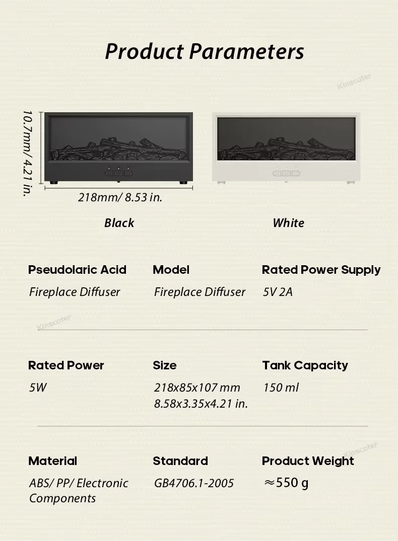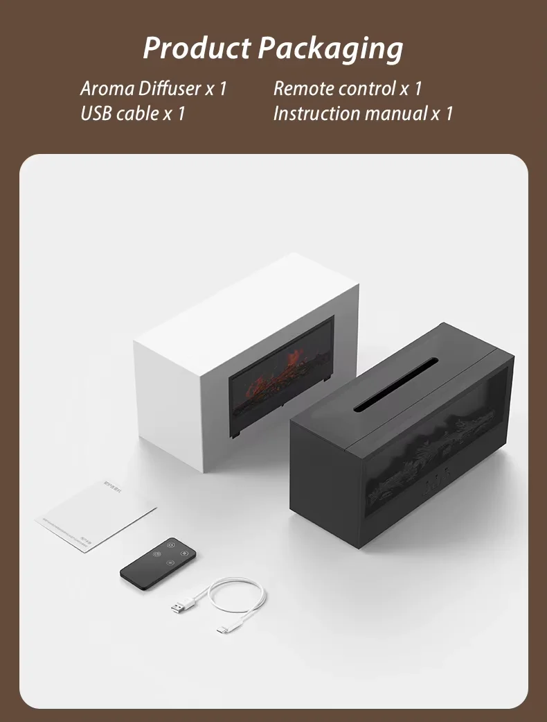 This innovative aromatherapy diffuser brings the cozy ambiance of a fireplace directly into your home or office, blending wellness benefits with captivating visual appeal. Utilizing advanced ultrasonic technology, it functions as a humidifier and an essential oil diffuser simultaneously, misting your favorite scents while projecting a mesmerizing colored flame or bonfire effect. The LED lights and quiet operation create a serene, spa-like atmosphere, perfect for relaxation or enhancing your mood without the safety concerns of an open fire. Crafted with a sleek, modern design, this unique diffuser serves as a stylish decorative piece that seamlessly integrates into any interior space, offering both a functional aroma solution and a comforting visual focal point.