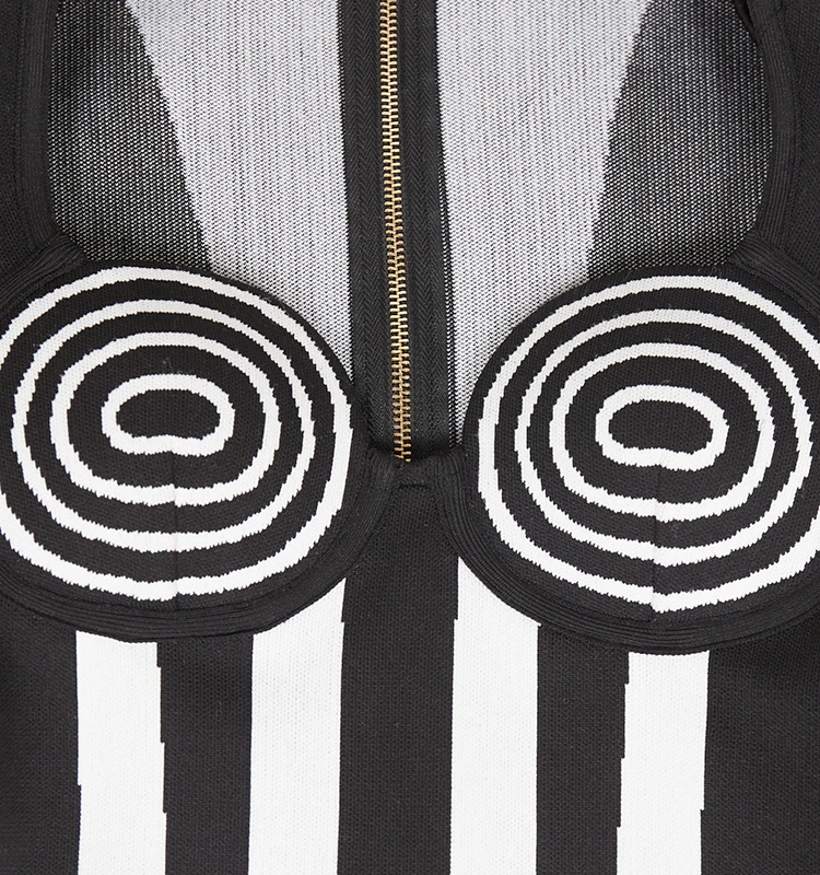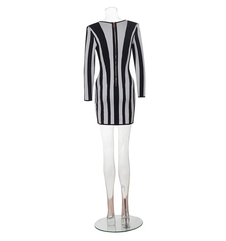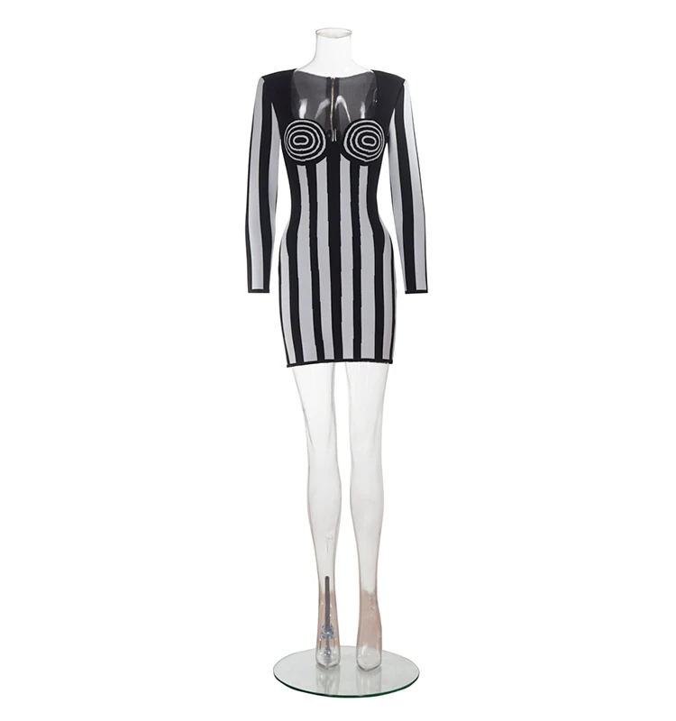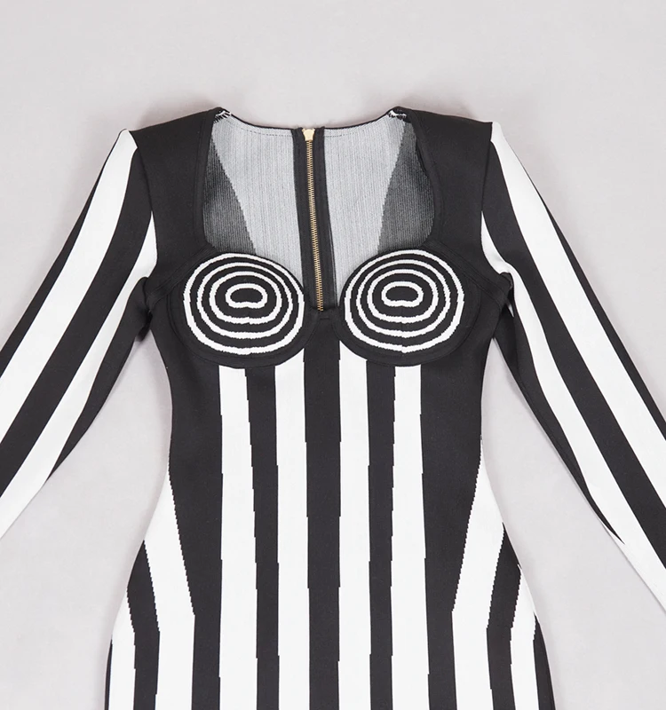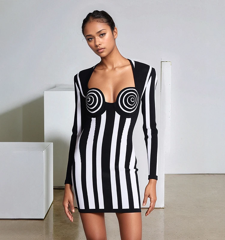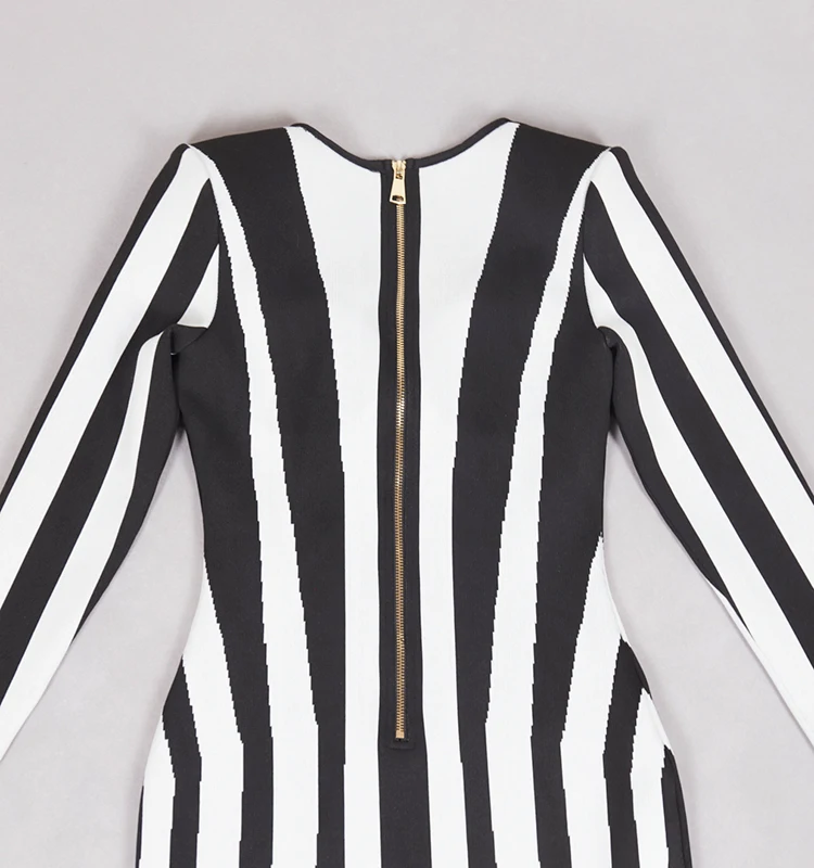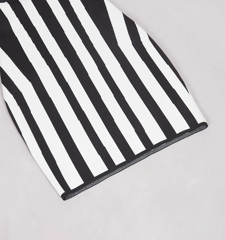Make a bold and sophisticated statement with this boutique party dress, featuring a striking black and white vertical striped pattern designed to elongate the silhouette and command attention. Crafted from premium, high-density bandage fabric, this dress provides a signature bodycon fit that sculpts and defines the figure with exceptional support and comfort. The timeless monochrome aesthetic is elevated by a modern, high-fashion cut, making it a versatile "all-match" essential for dynamic parties, special occasions, or upscale evening gatherings. Perfectly balancing classic elegance with an impactful contemporary edge, this dress is the ultimate choice for the woman who wants to showcase a confident, refined, and undeniably trendy look.