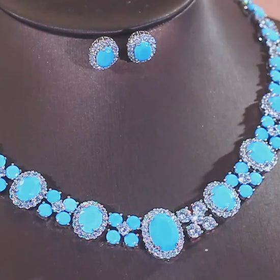 Elevate your special occasion look with this Charming Blue CZ Jewelry Set, featuring a stunning oval-shaped necklace and matching earrings crafted with radiant turquoise cubic zirconia stones. The vibrant blue sparkle adds an elegant pop of color, while the high-quality craftsmanship ensures a refined, luxurious finish. Perfect for brides, weddings, formal events, or as a thoughtful gift, this jewelry set combines timeless beauty with modern charm—making it the ideal accessory to complete any sophisticated ensemble.