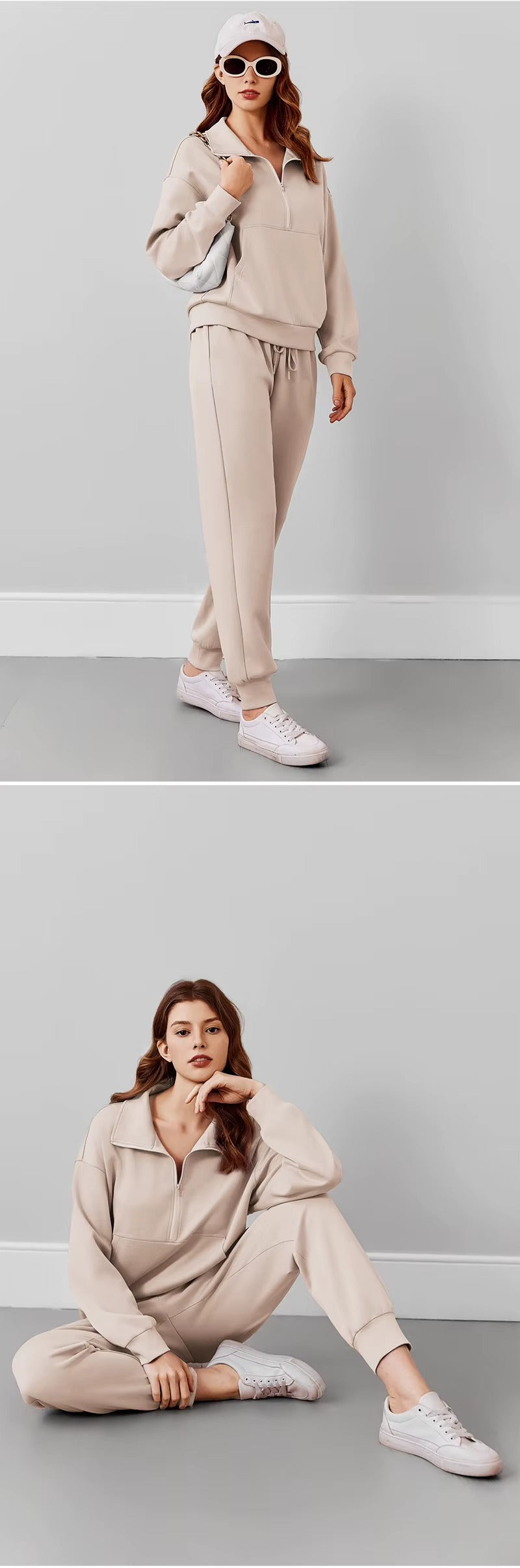 Sets for Women 2025 Fall Travel Outfits Long Sleeve Tracksuit Joggers Sets Half Zip Sweatsuit Matching Set
