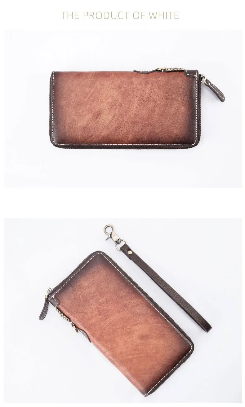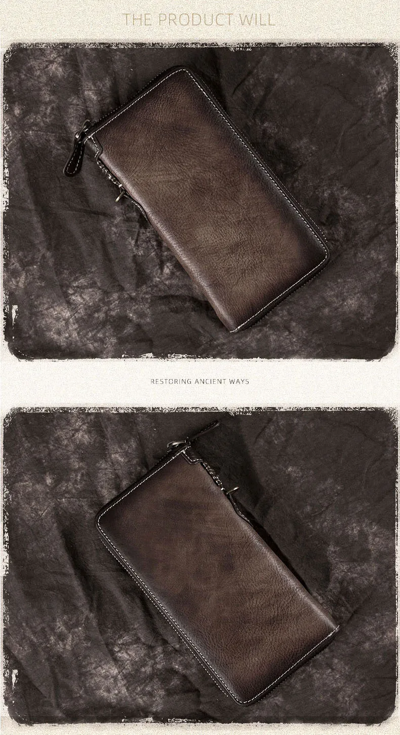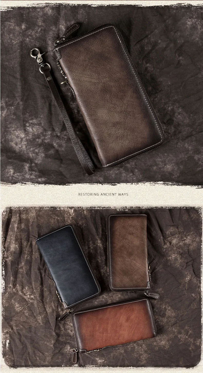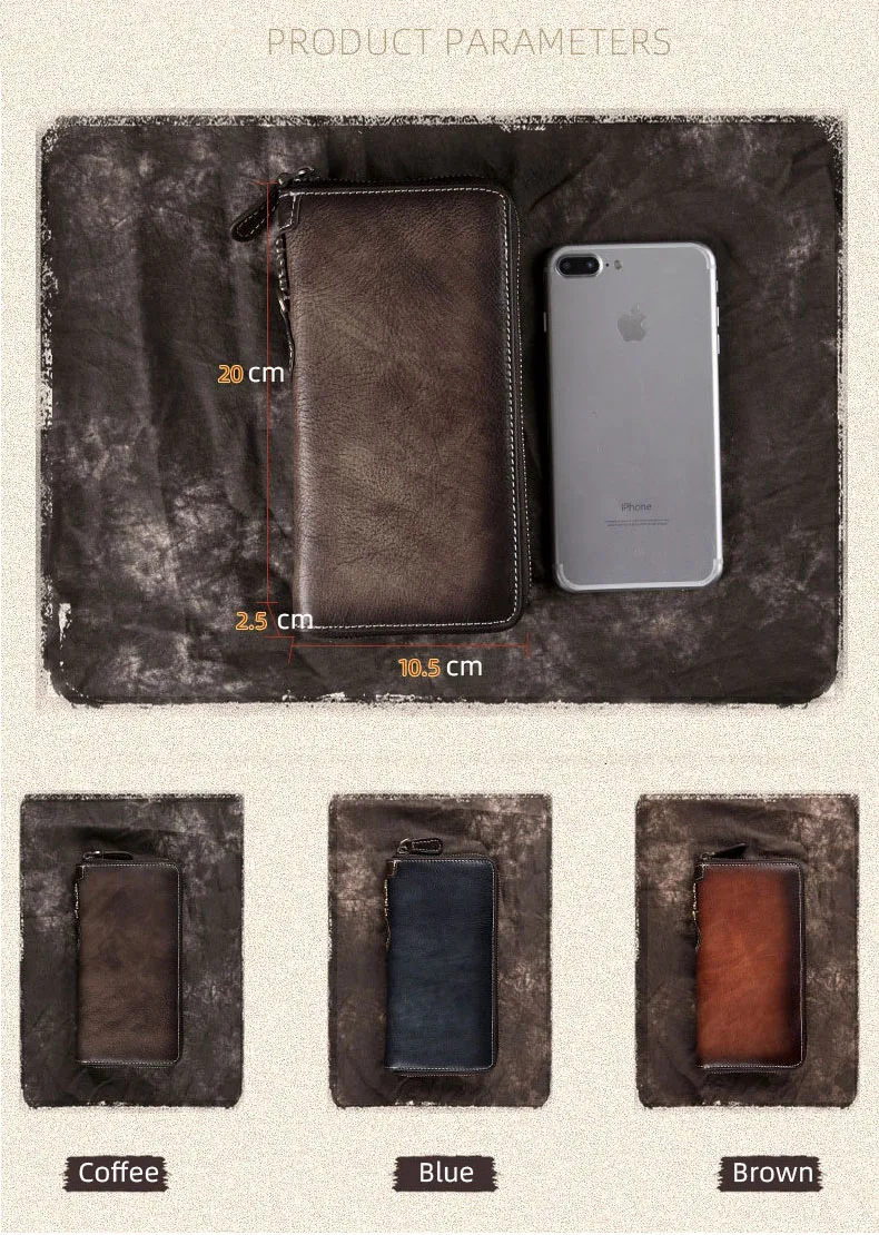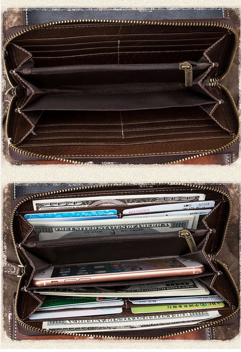 Customizable Men's Clutch Purse New Genuine Cow Leather Zipper RFID Hand Painted Long Cell Phone Bag