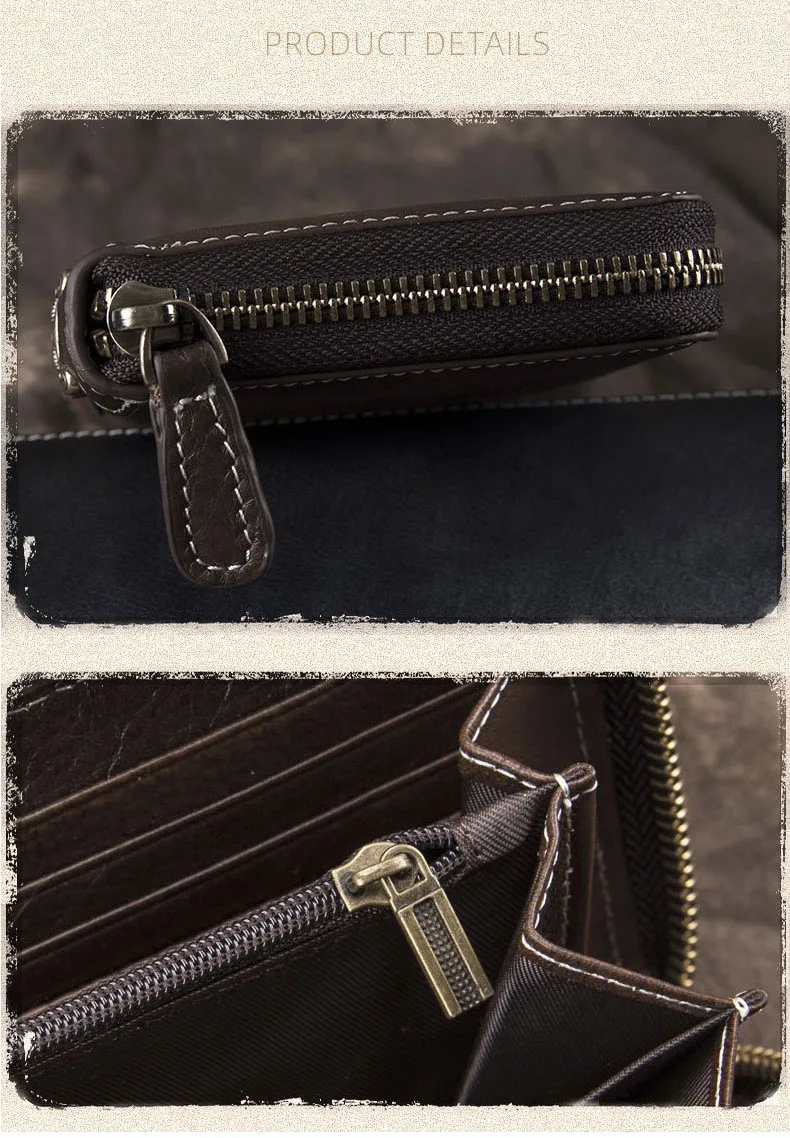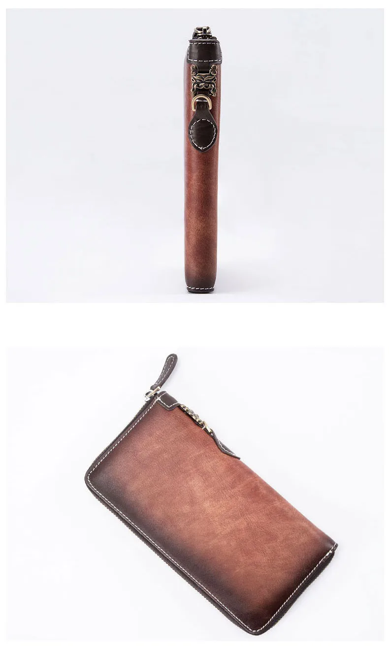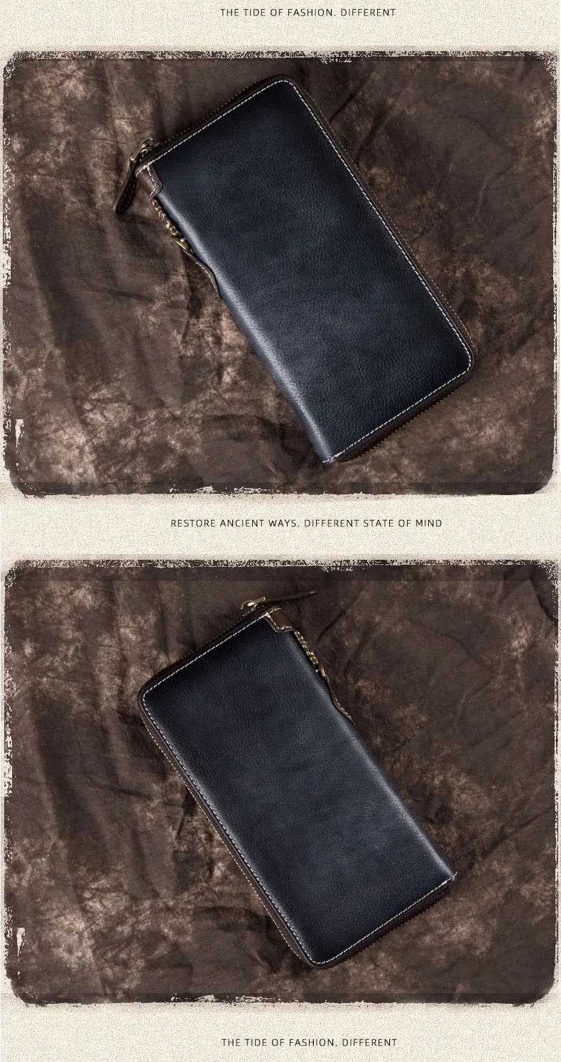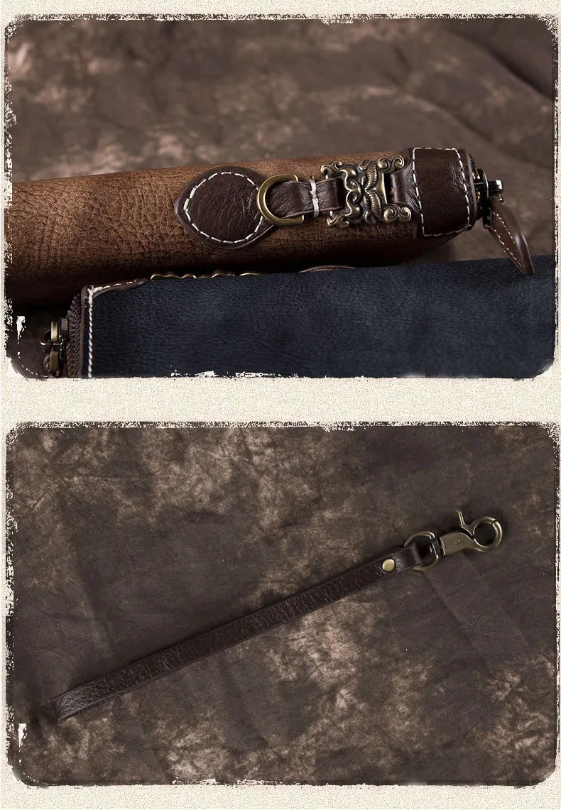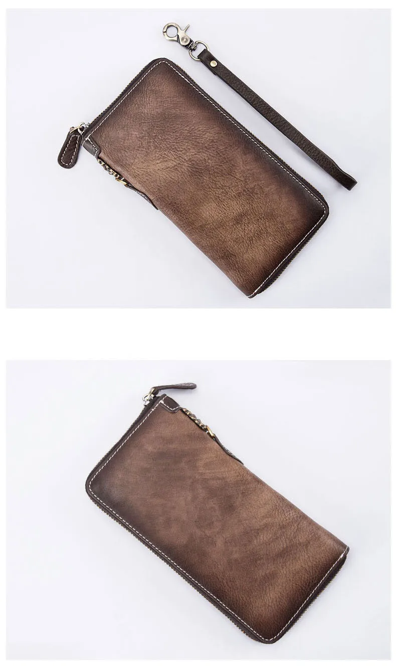 Customizable Men's Clutch Purse New Genuine Cow Leather Zipper RFID Hand Painted Long Cell Phone Bag