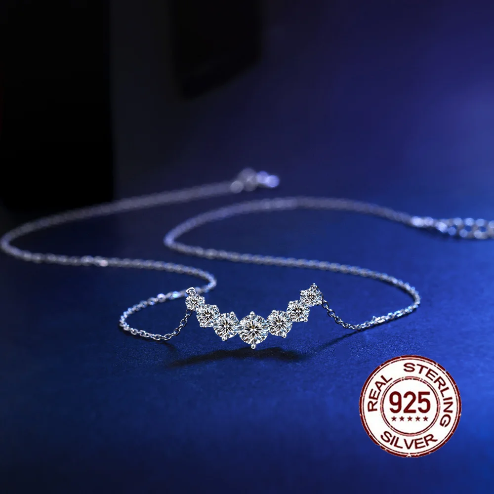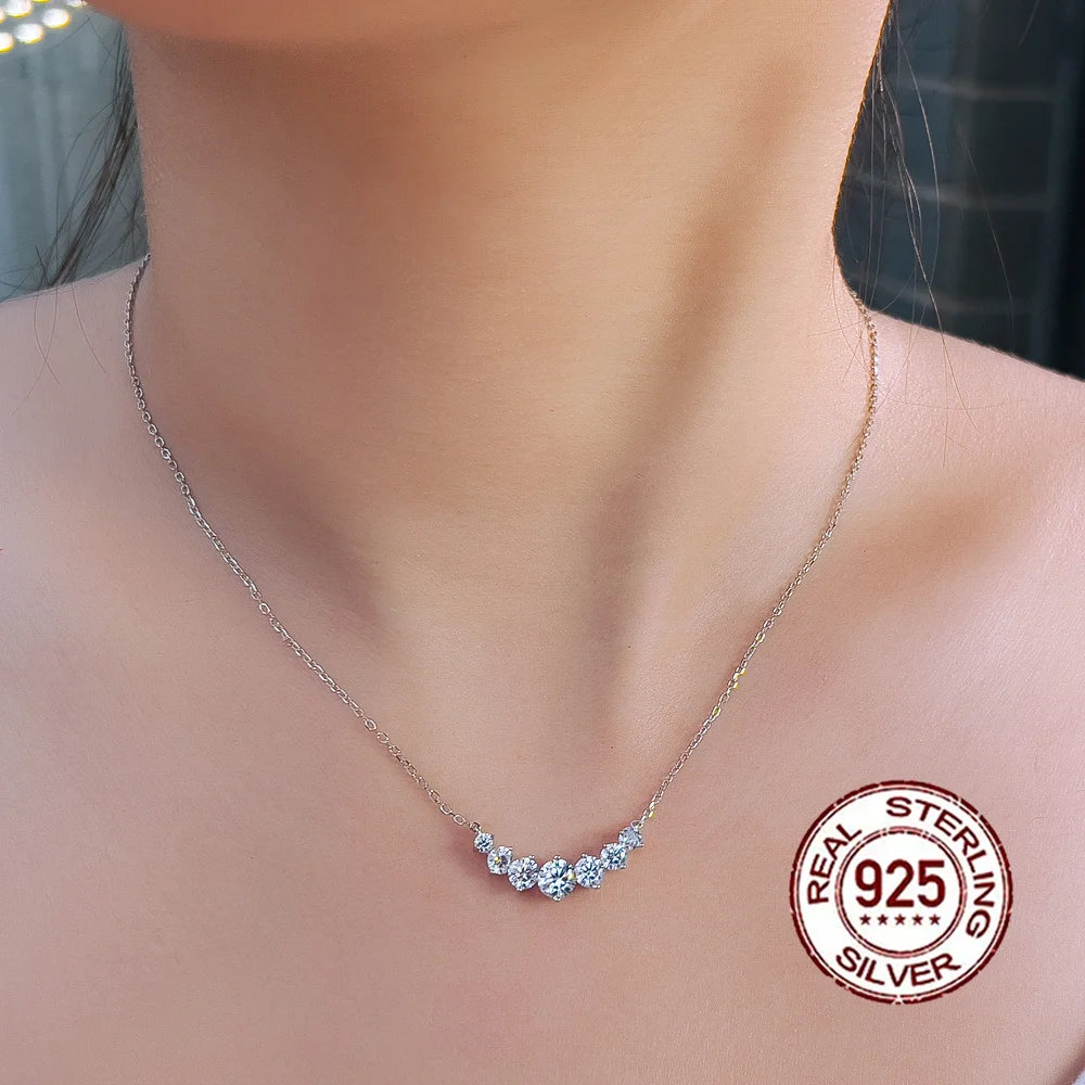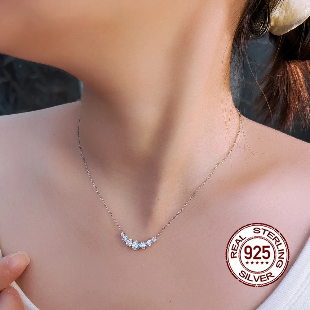 Elegant 925 Silvery 5mm Ice Round Zirconia Inlaid Smile Shaped Pendant Necklace for Women Banquet Valentine's Day Gift