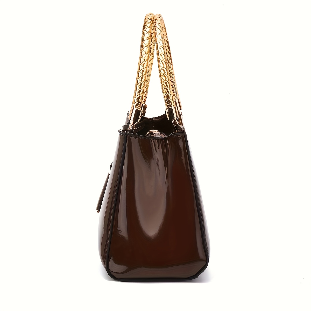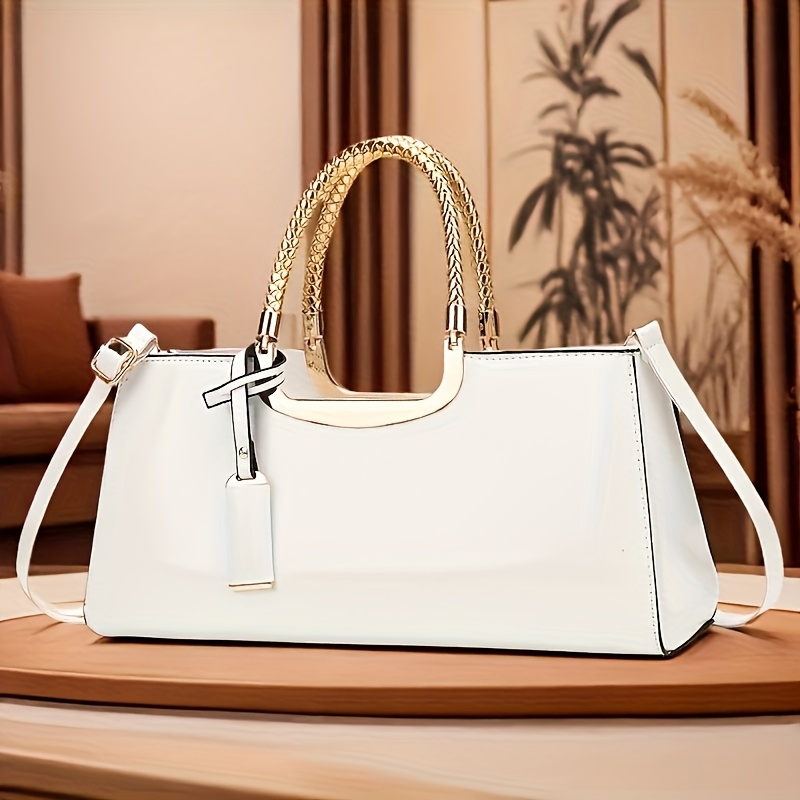 Elegant Black Patent Leather Evening Handbag - Golden-Tone Hardware & Top Handle, High-Quality for Weddings, Parties, Vacations - Women's Fashion Purse