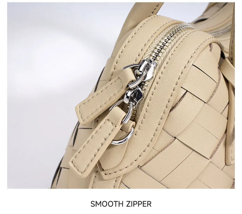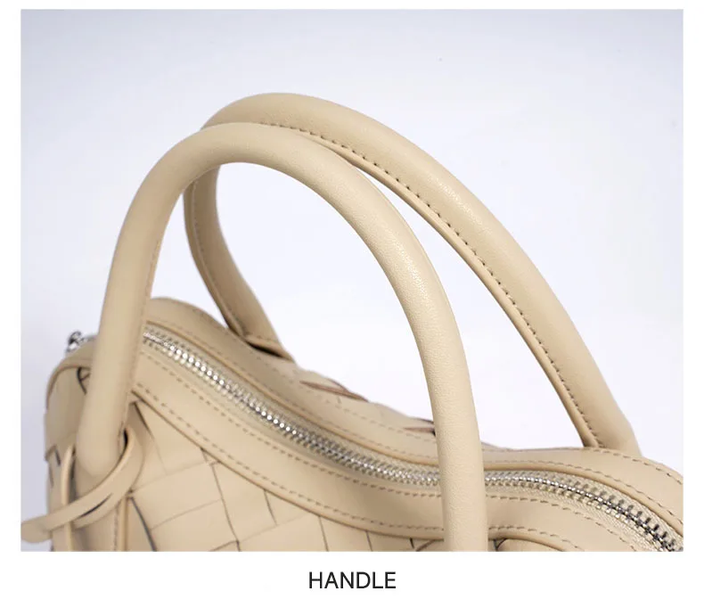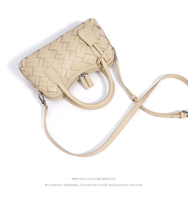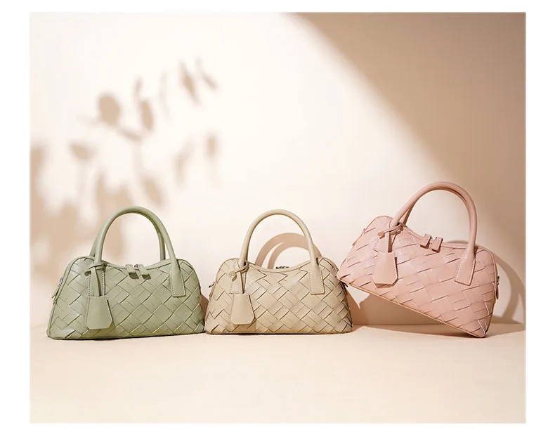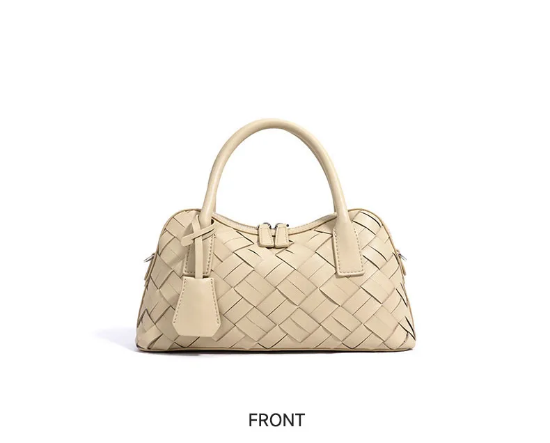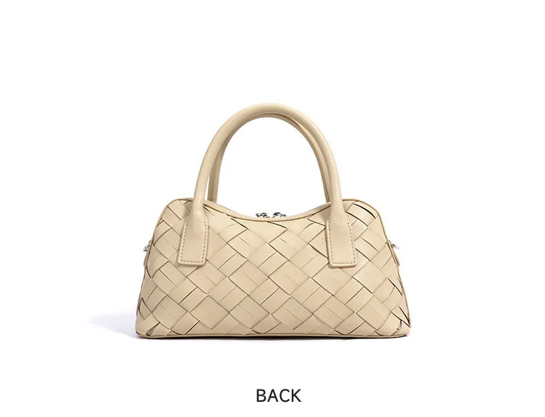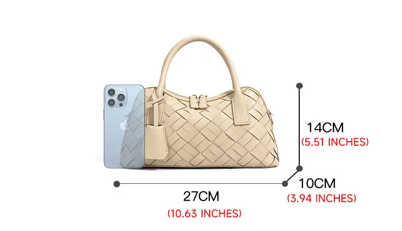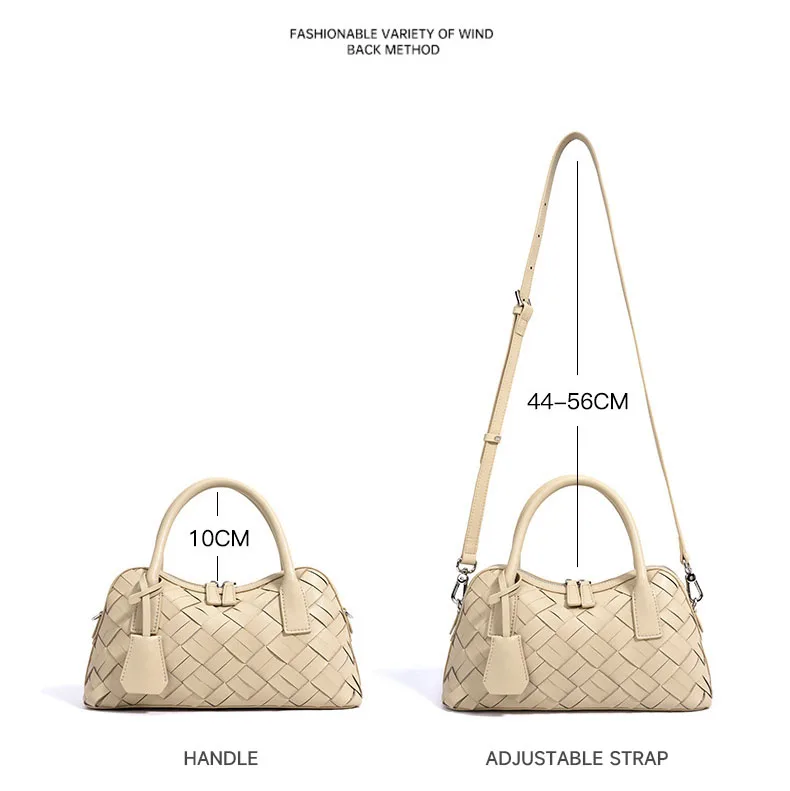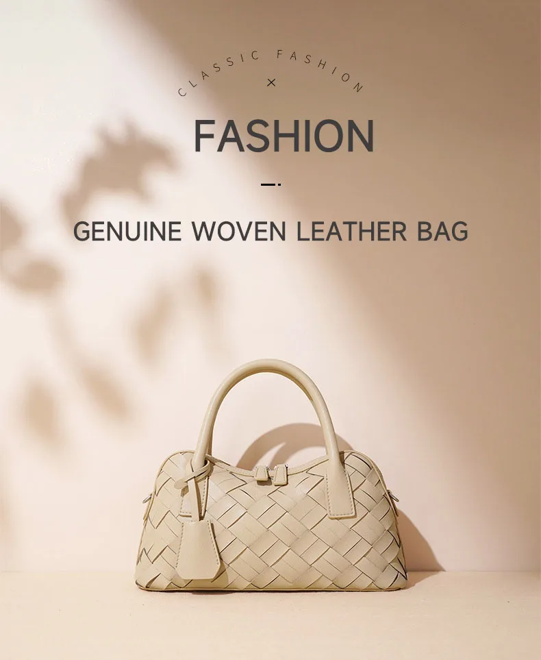 Elegant Genuine Cowhide Leather Woven Bag Women's Lady Style Handwoven Crossbody Shoulder Clutch Pillow Handbag Purse