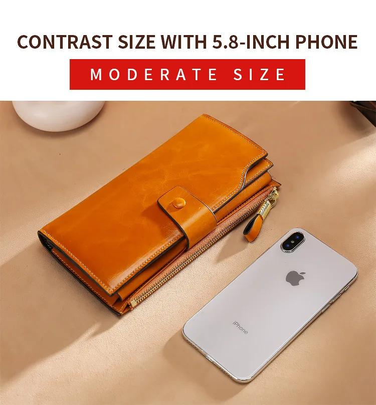 Fashion Real Leather Women RFID Clutch Purse with Strap Long Handle Wallet