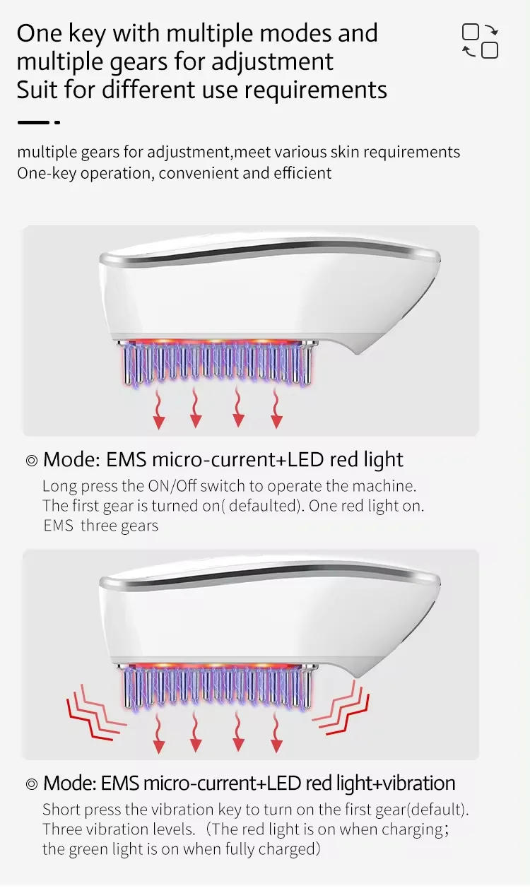*EMS Microcurrent + LED Red Light + Radio Frequency |