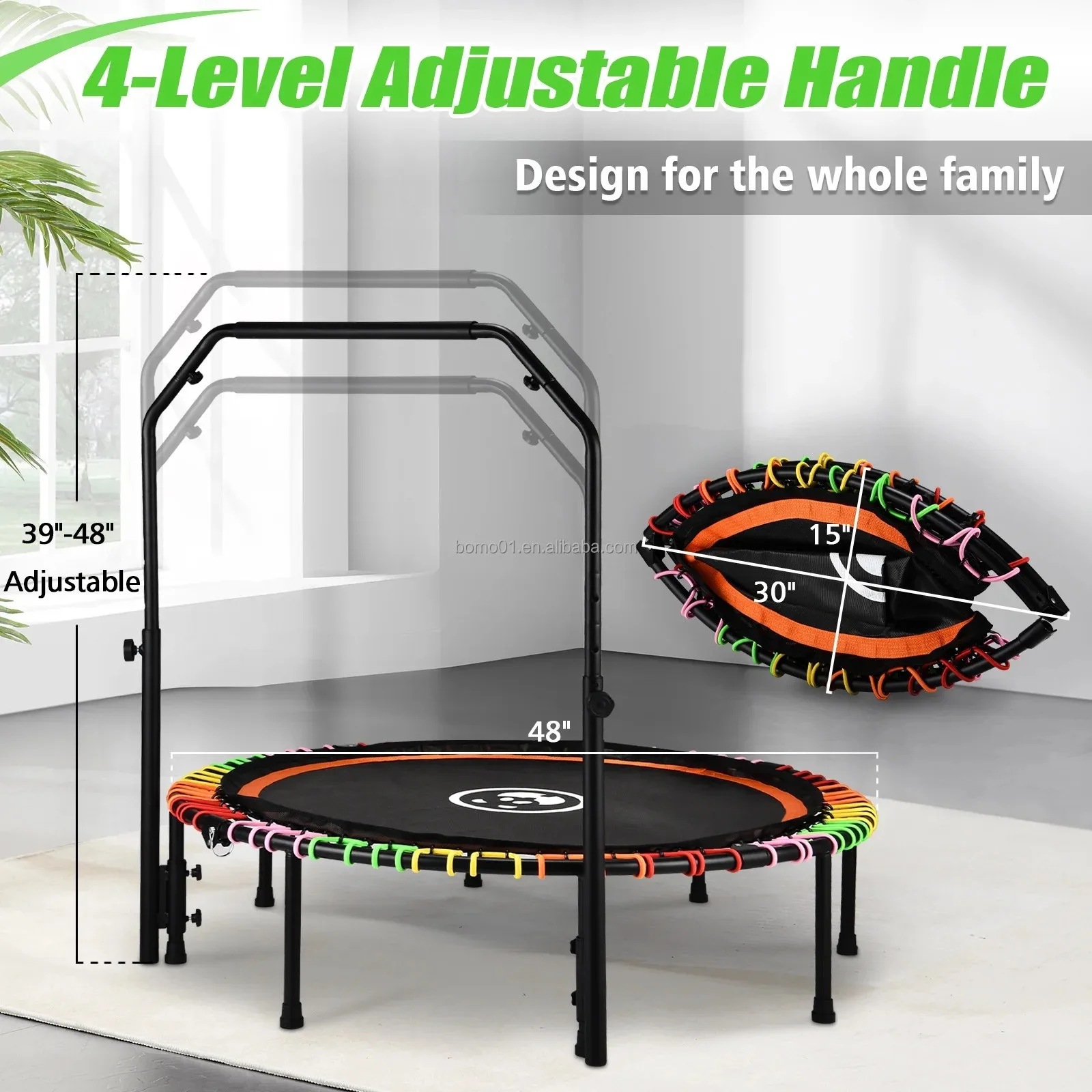 Fitness Trampoline Heavy Duty Indoor Children's Jumping Bed with Adjustable Foam Handle and Bungees