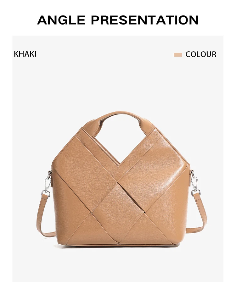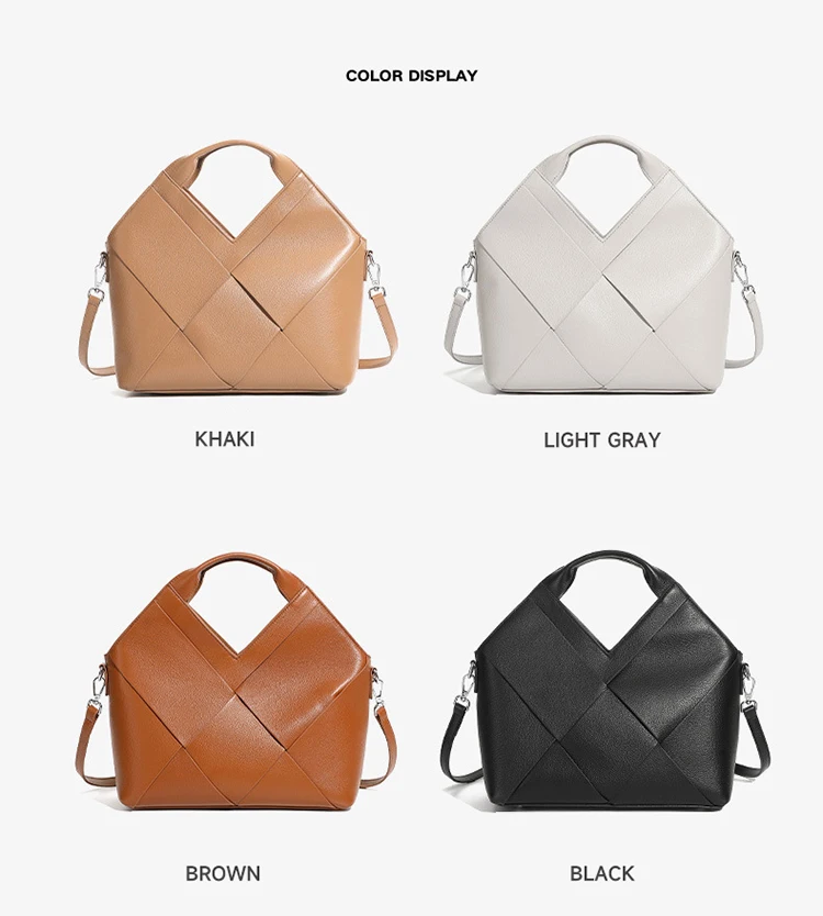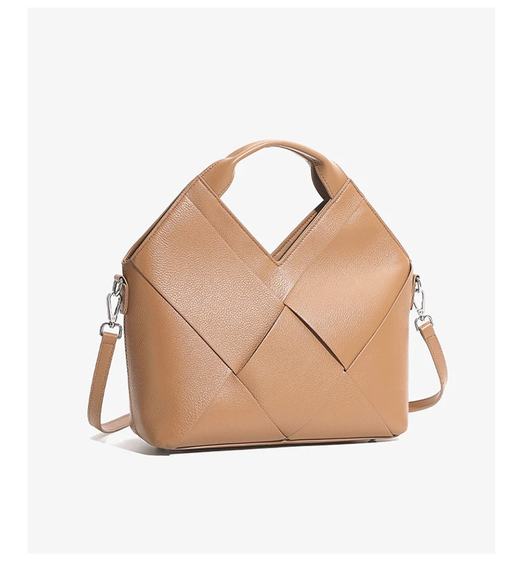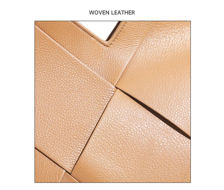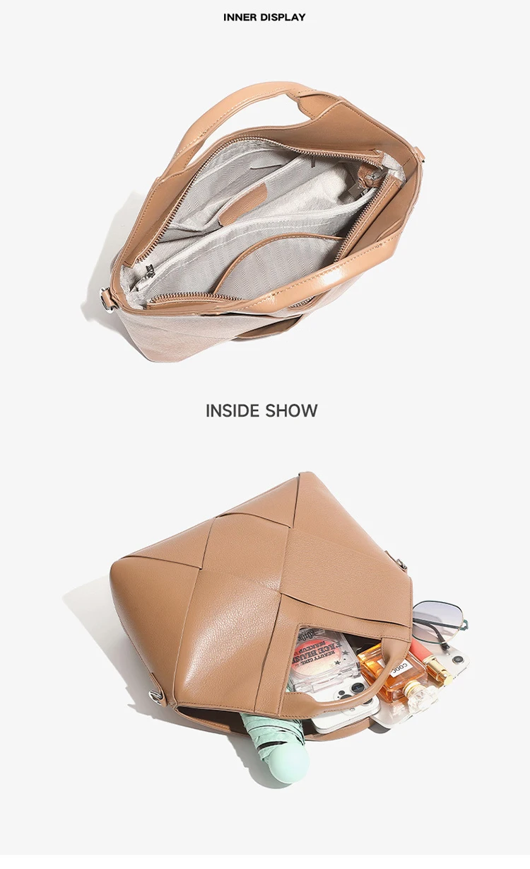 Genuine Cowhide Leather Female Handbags Woven Crossbody Shoulder Totes for Women Open Closure Type for All seasons