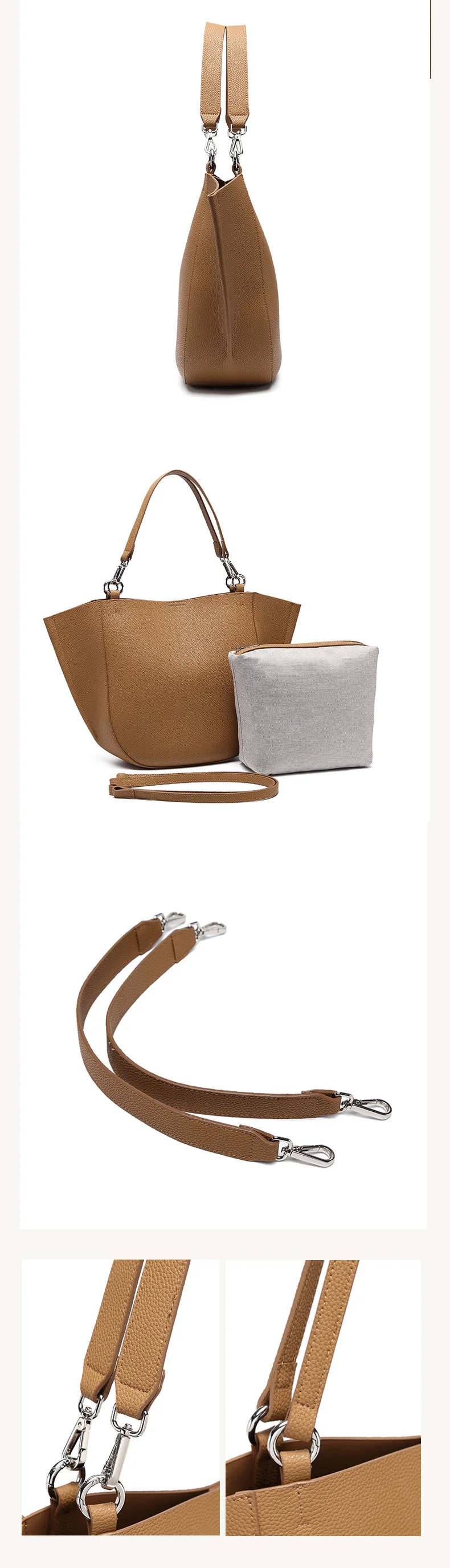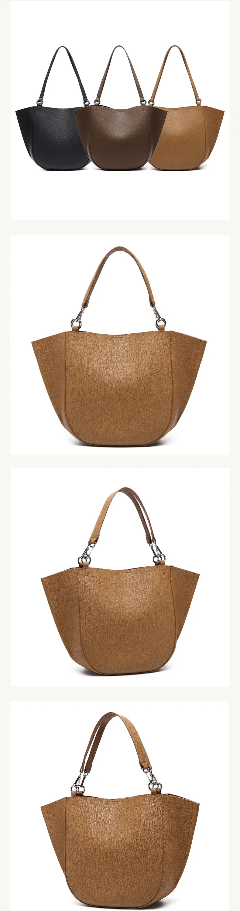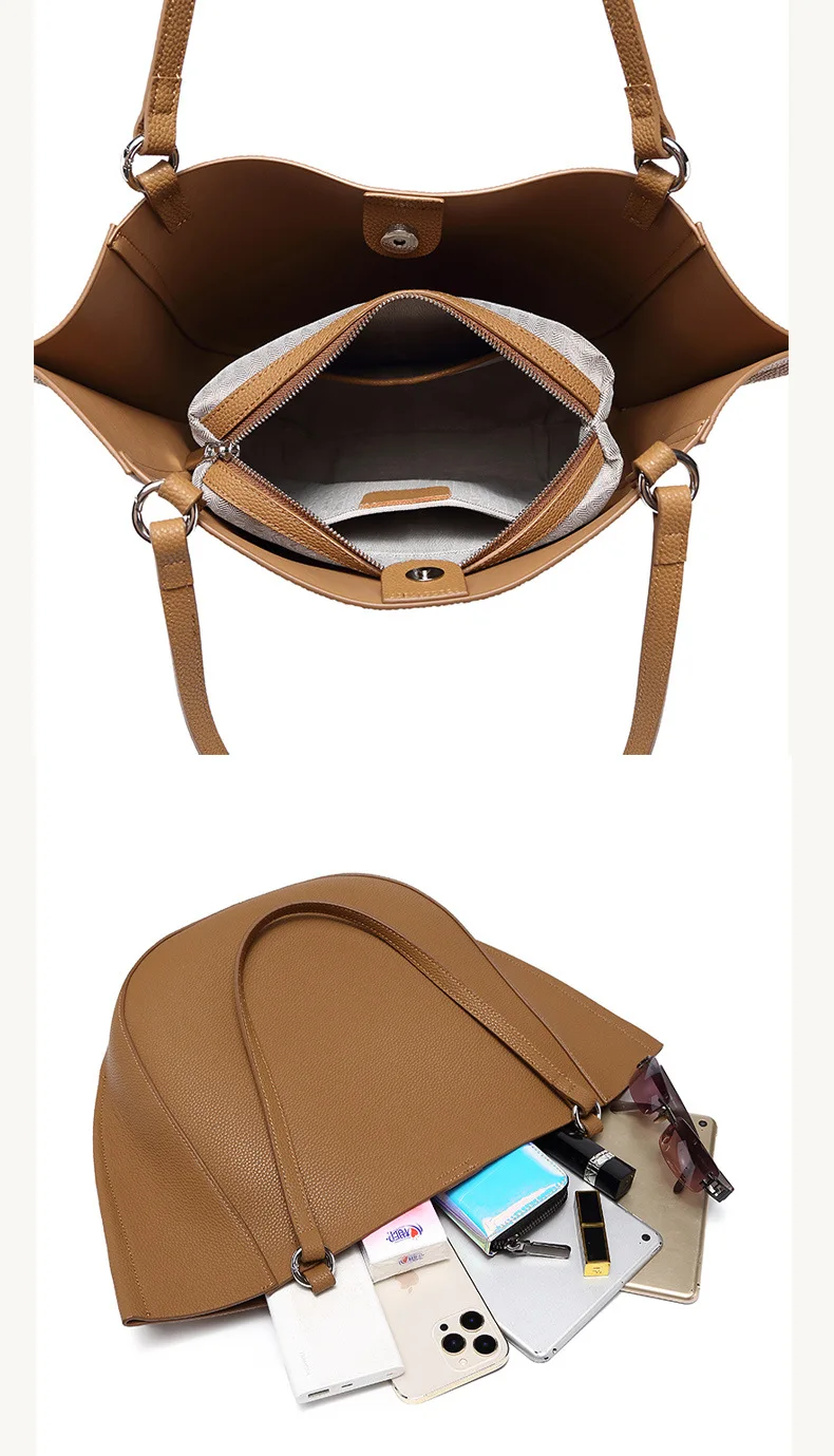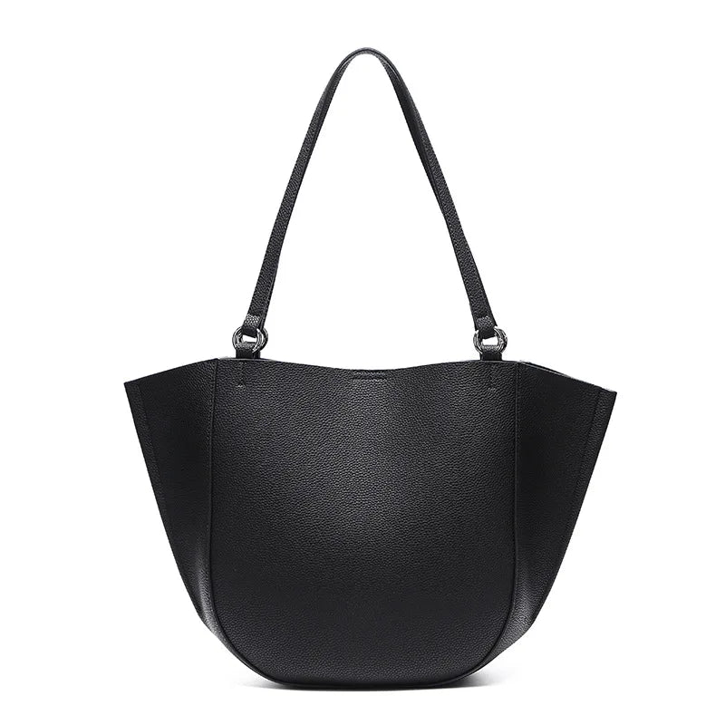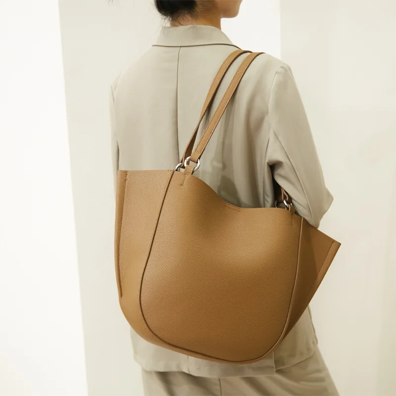 Genuine Leather Women's Large Capacity Casual Tote Bag with Niche Design Fashionable Simple Personality Style for Mother Child