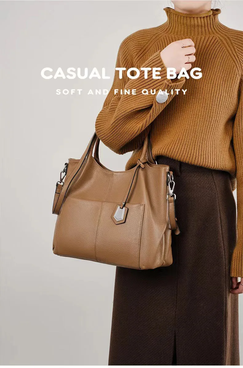 Genuine Leather Women's Tote 2025 New, Large Capacity Single Shoulder Handbag Middle-aged Mom Crossbody Bags