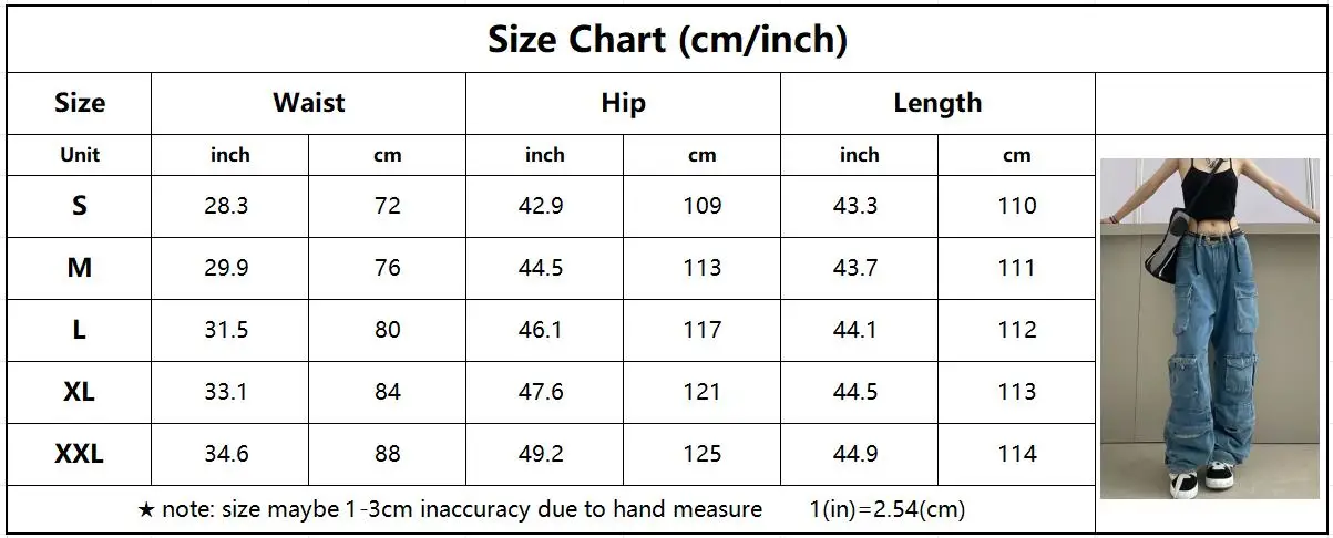 Girls Loose Overall Denim Jeans Big Pockets Hip-hop Streetwear Zipper Button Trousers Long Pants Fashion Casual Jeans