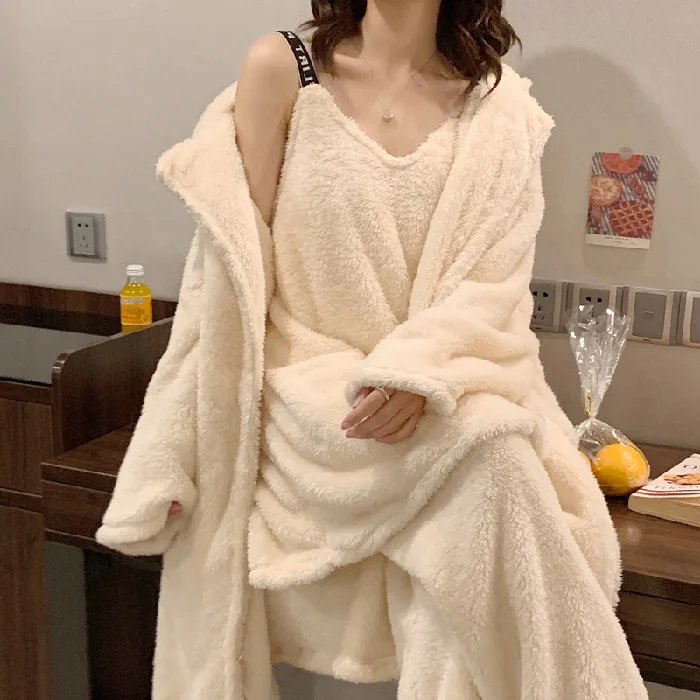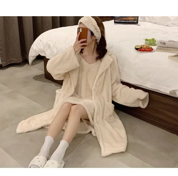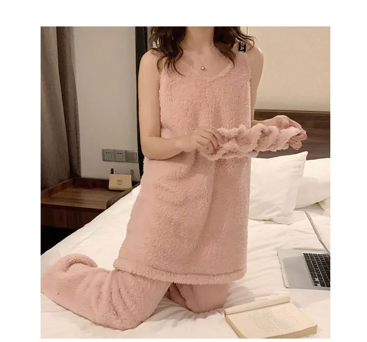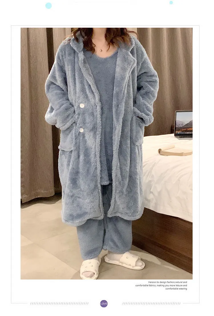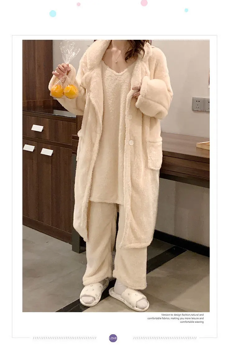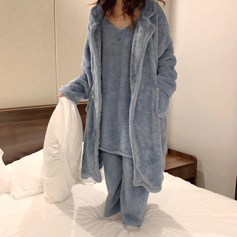 Good Quality Solid Color Warm Pajama Women's Flannel Sleepwear Women Winter Sleepwear Pajama 4 Pieces Suit