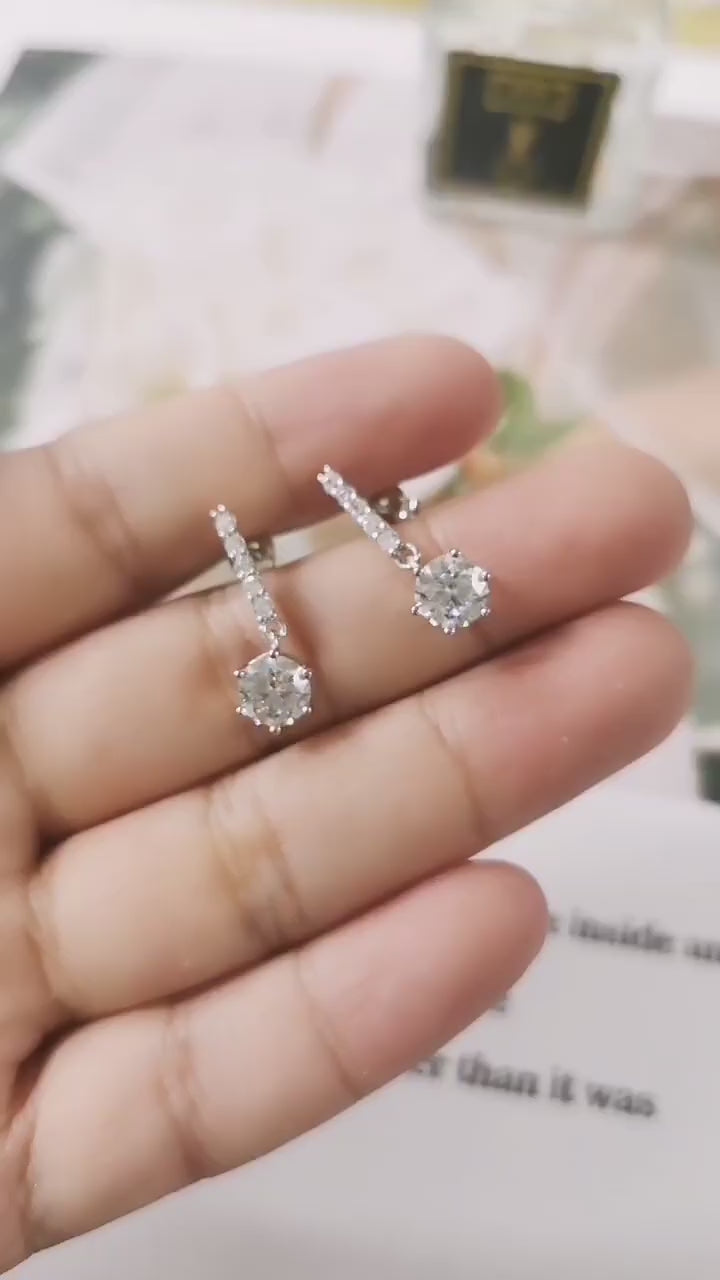 GRA 1CT Unusual Long Hanging Dangle Drop Moissanite Diamond Earring Women 925 Sterling Silver Wed Engagement Fine Jewelry