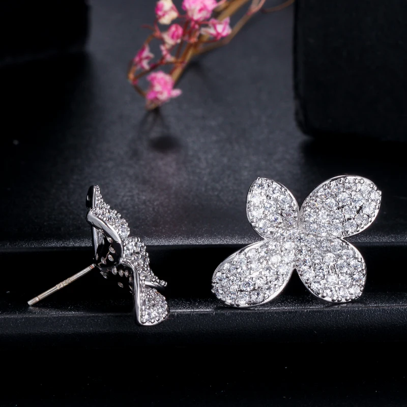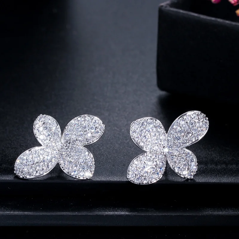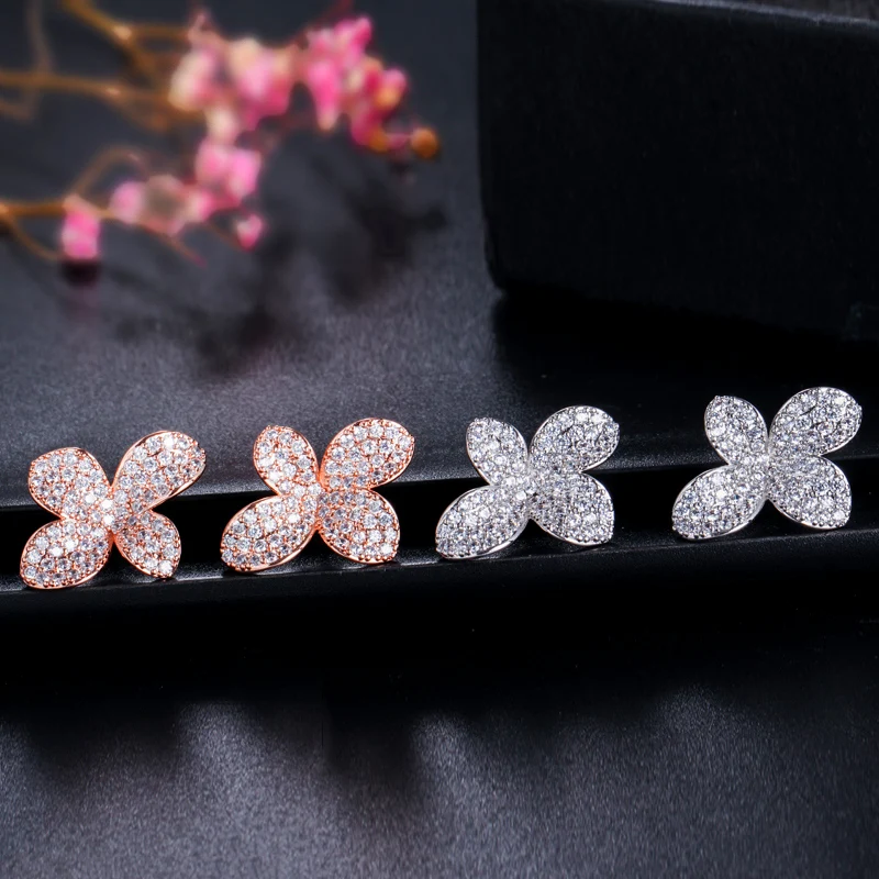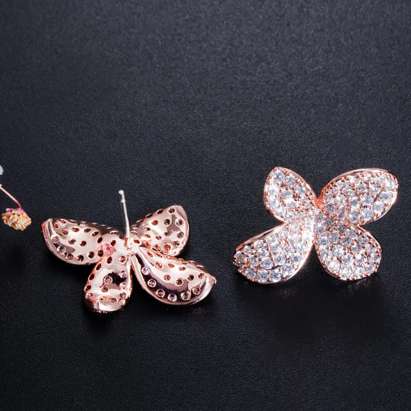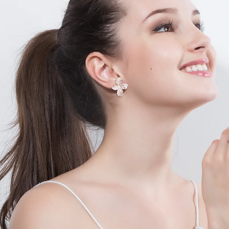Graceful Design Rose Gold Plated Cubic Zircon Flower Stud Earrings for Women Party Daily Wear Appointment Gift
