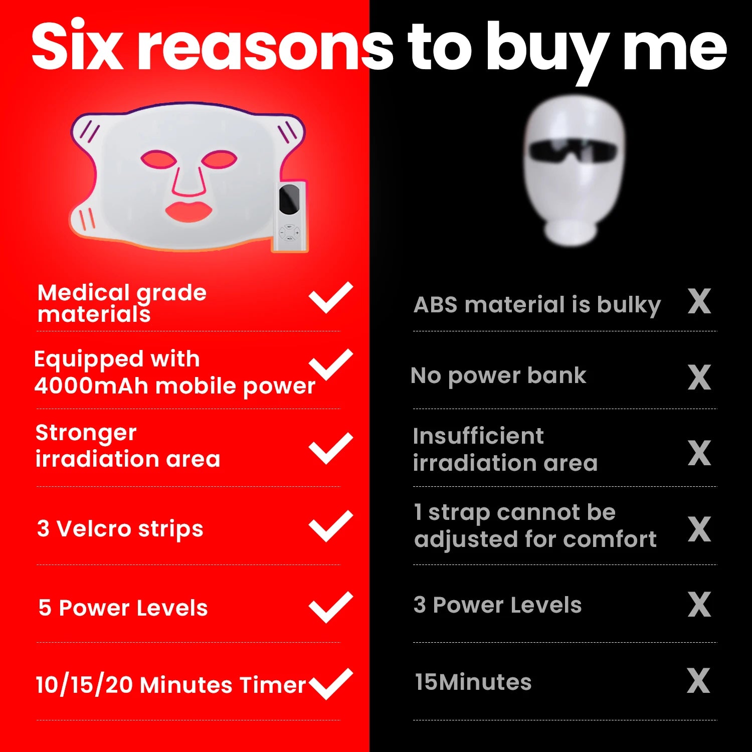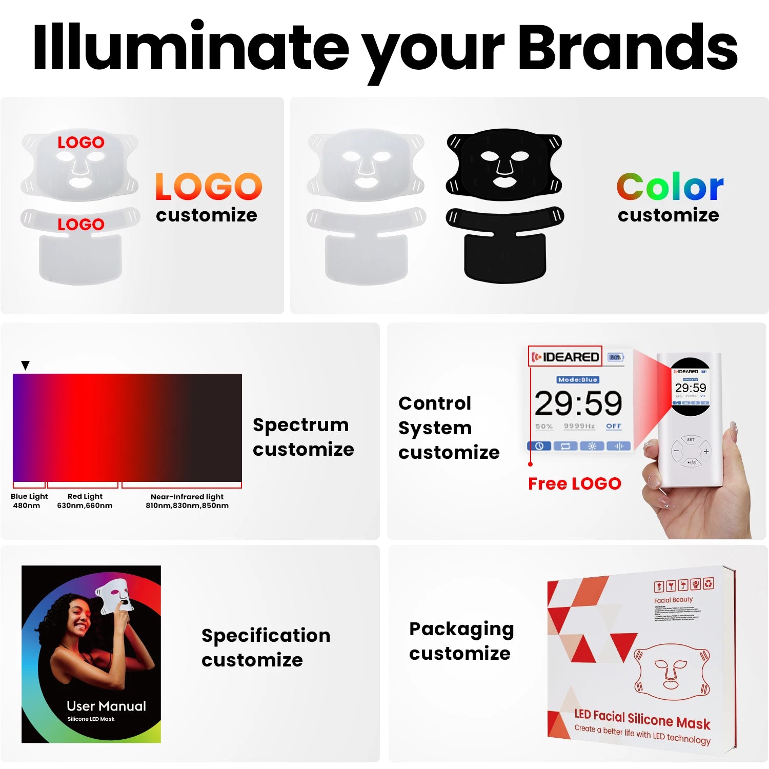 High Grade 630nm 830nm Infrared Beauty Mask and Neck White Silicone Facial Red Light Therapy Led Face Mask