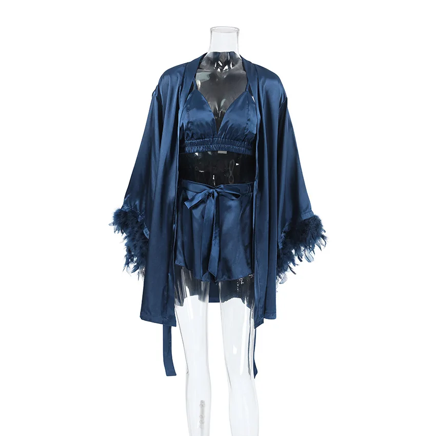 High Quality Feather Women Sexy Lingerie Robe Seductive Women Pajamas Set Women's Underwear Pajamas