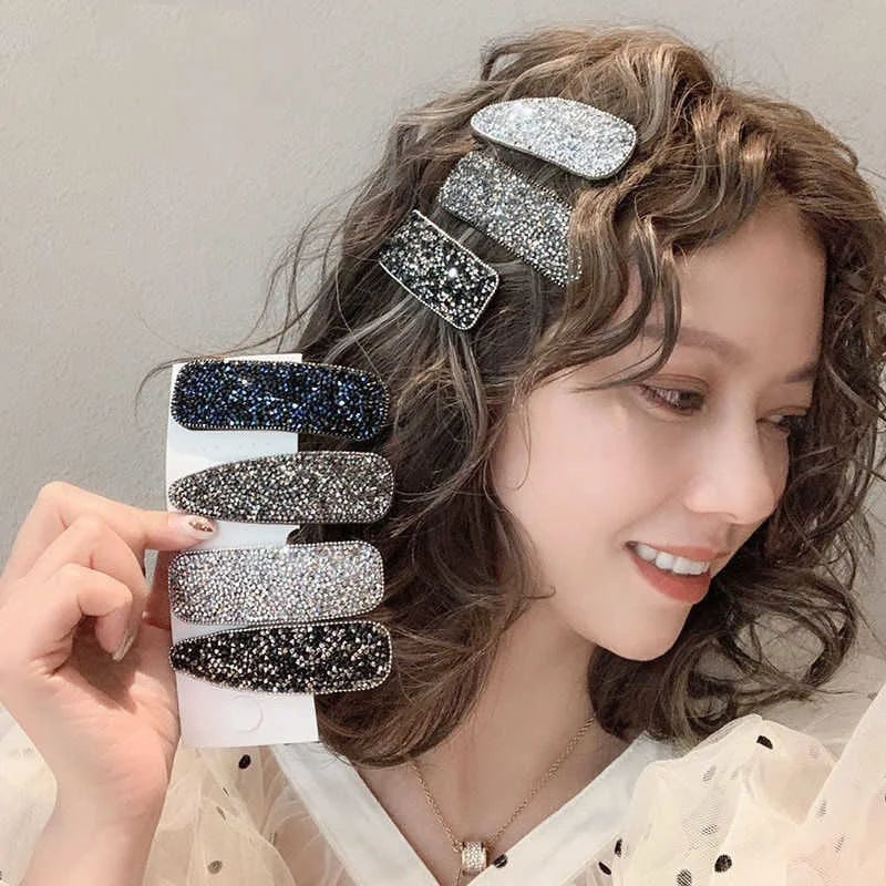 Korean Full Crystal Hair Barrettes Women Hair Pins Jewelry Waterdrop Rectangle Geometric Hair Clip Hair Accessories Gift Girls