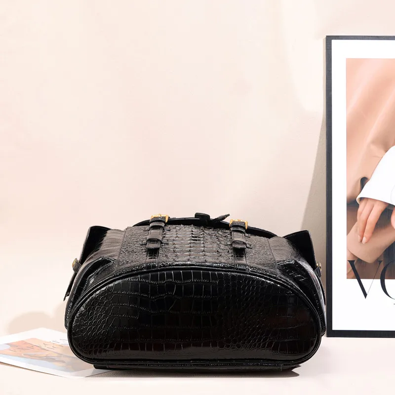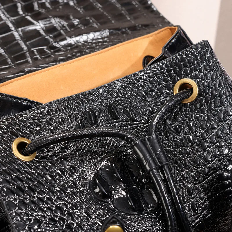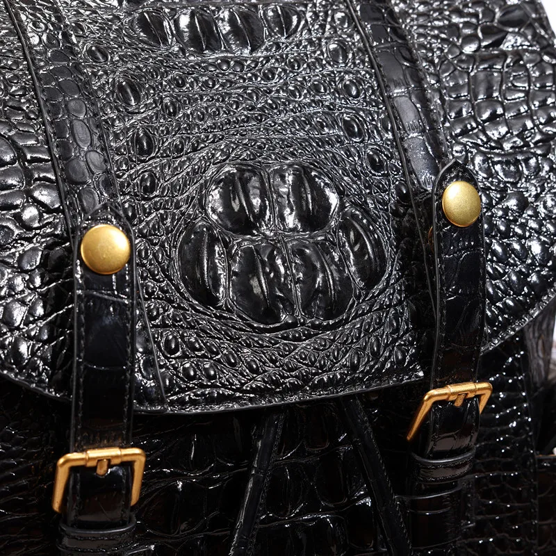 Large Capacity Crocodile Leather Unisex Backpack with Nylon Lining Zipper Closure for Male and Female Travelers and Students