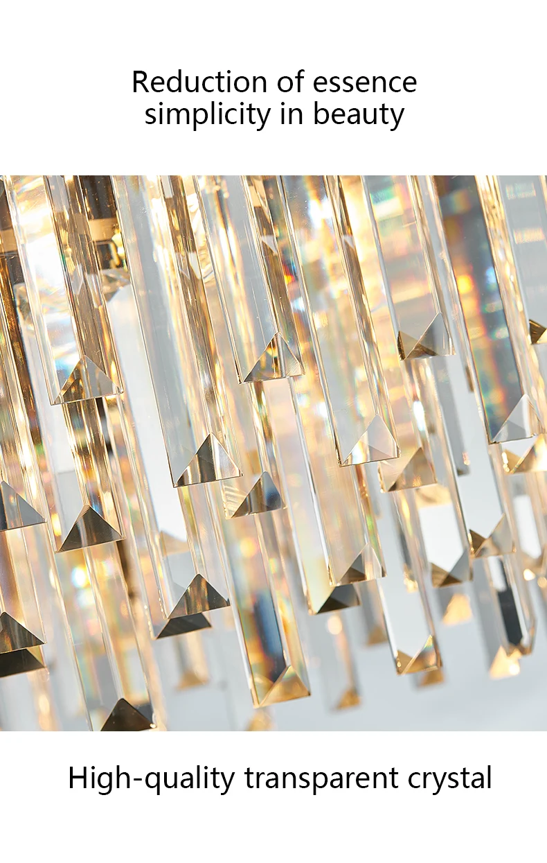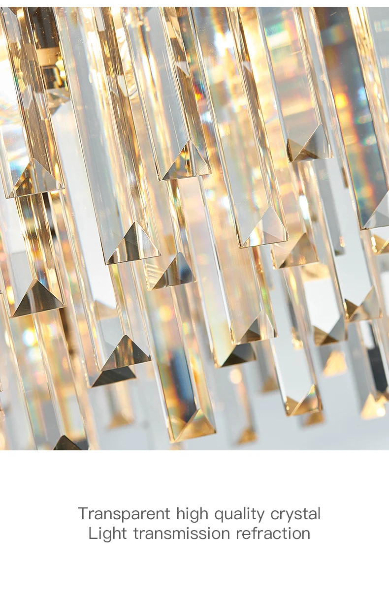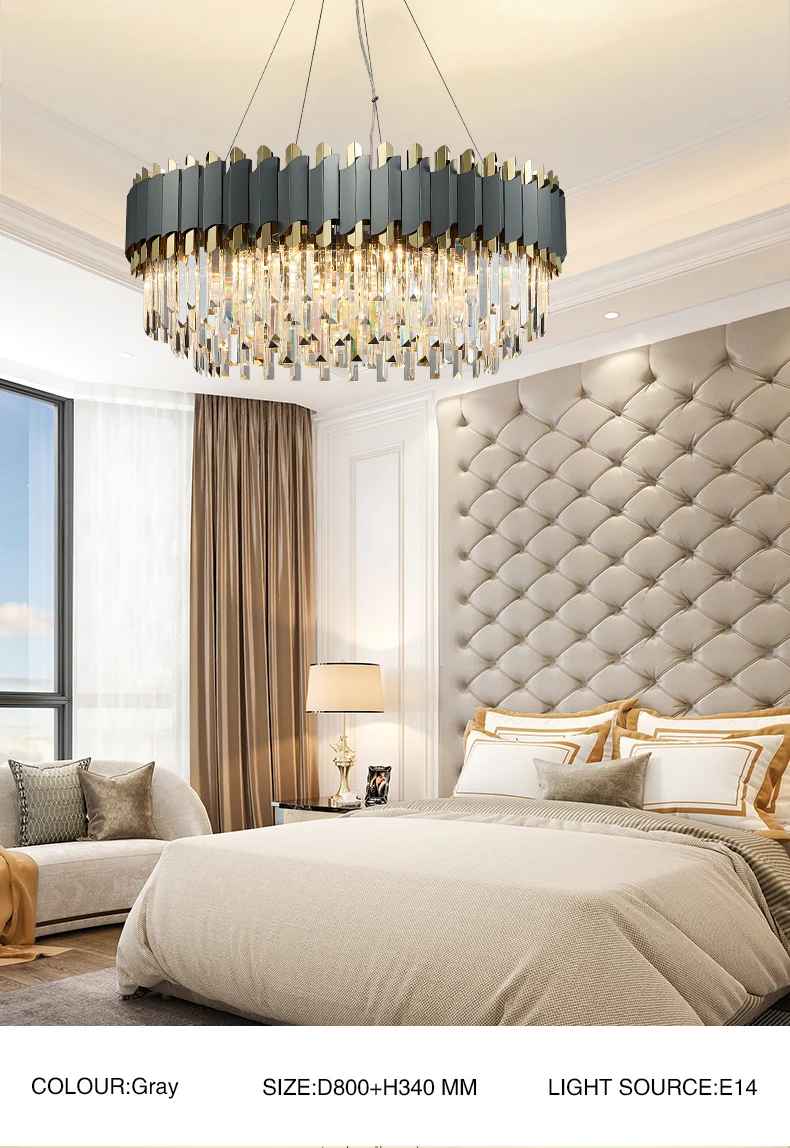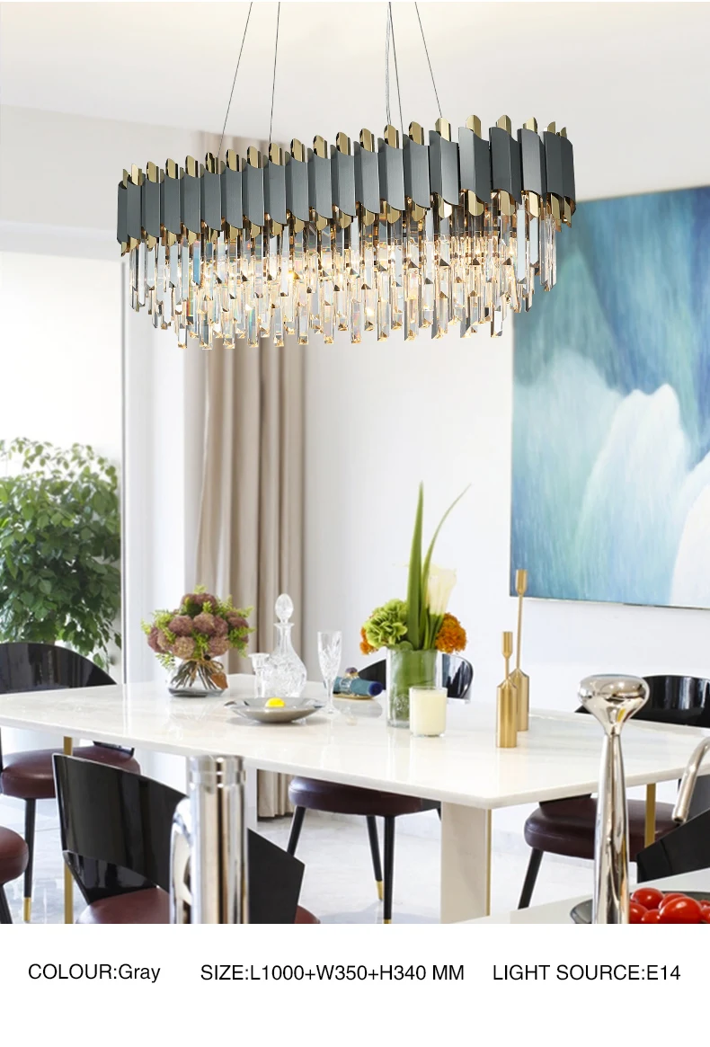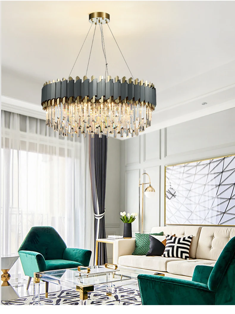 LED Art Deco Black Golden Stainless Steel Crystal Chandelier Hanging Lamp Lighting Lustre Pendant Lighting Fixture for Foyer