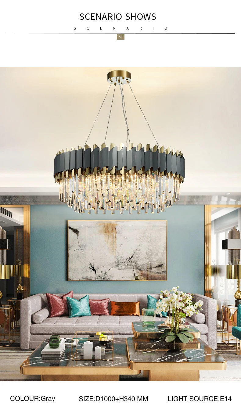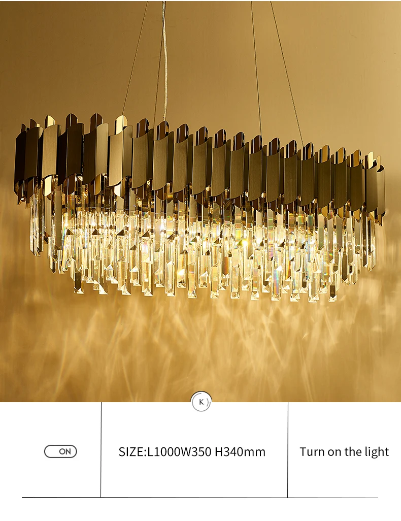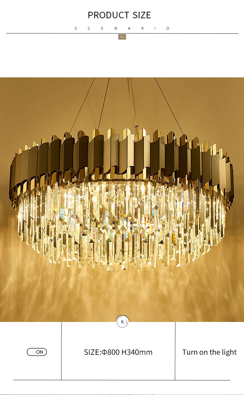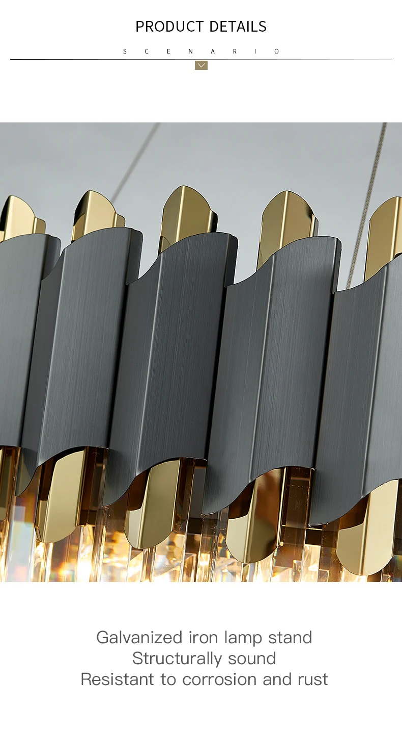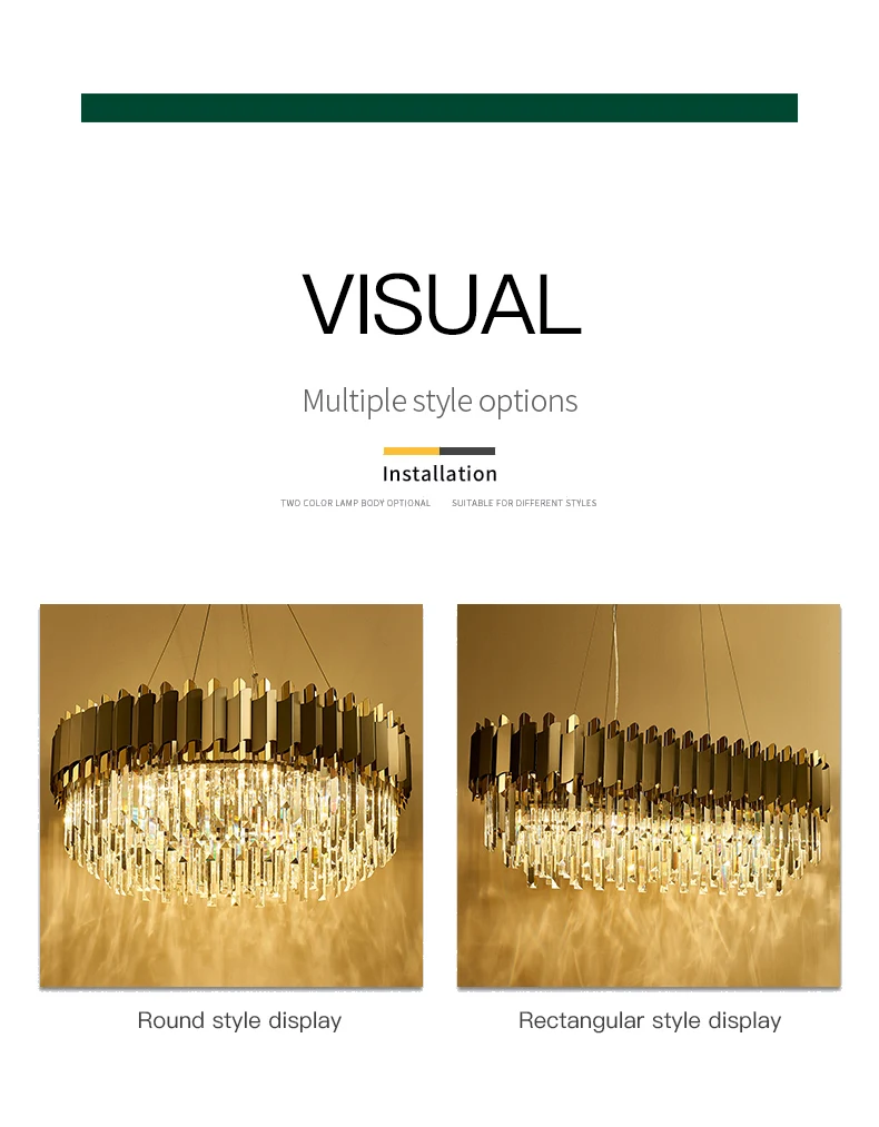 LED Art Deco Black Golden Stainless Steel Crystal Chandelier Hanging Lamp Lighting Lustre Pendant Lighting Fixture for Foyer