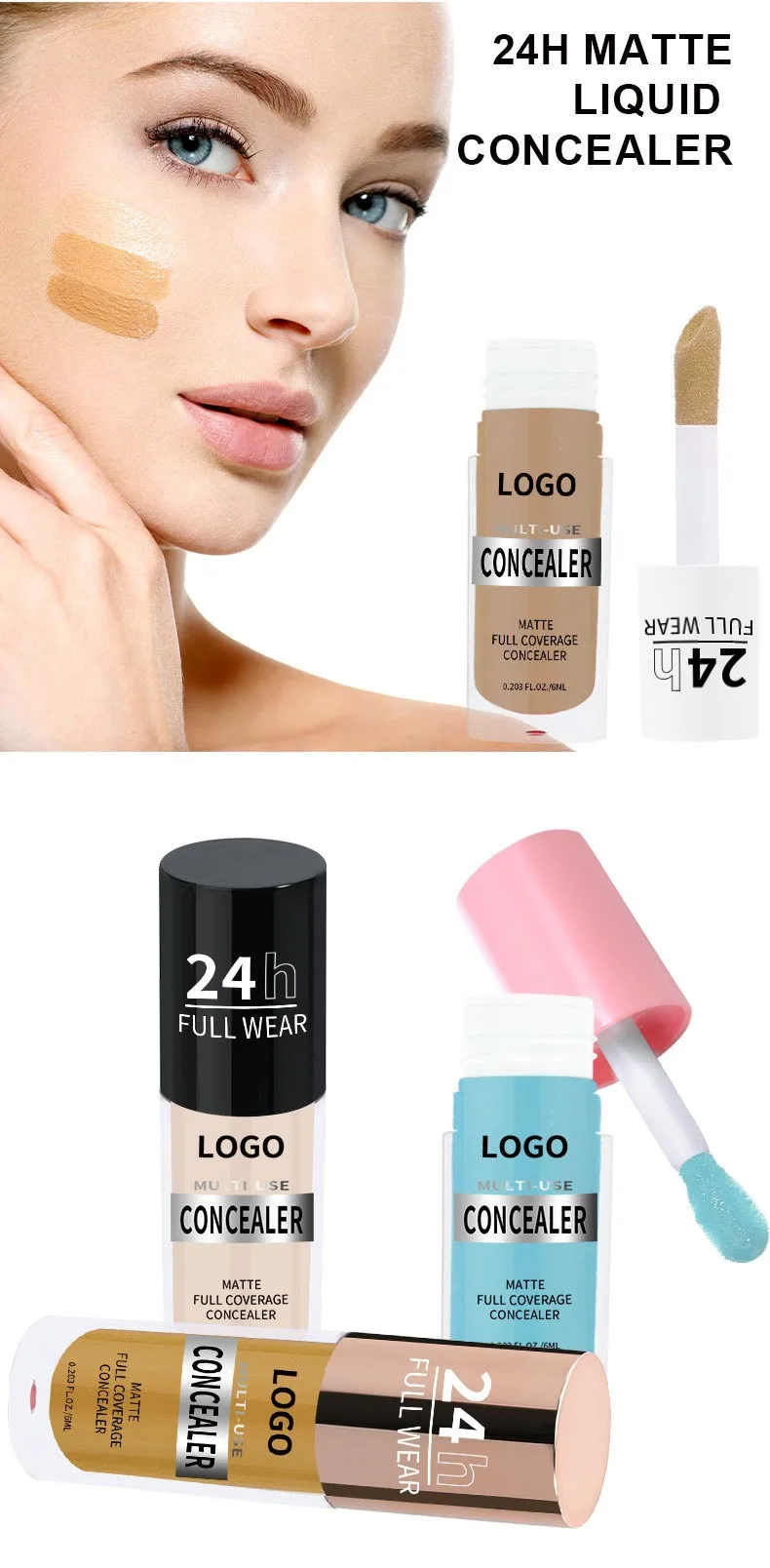 Achieve a flawless complexion with our Full Coverage Liquid Concealer, expertly formulated for brands seeking high-performance beauty solutions. This waterproof, long-lasting concealer delivers seamless coverage to effortlessly hide dark circles, blemishes, redness, and imperfections while maintaining a natural, skin-like finish. Its lightweight, blendable texture ensures smooth application without caking or creasing, making it ideal for all-day wear. Perfect for both professional and everyday makeup routines, this pairs beautifully with any foundation .
