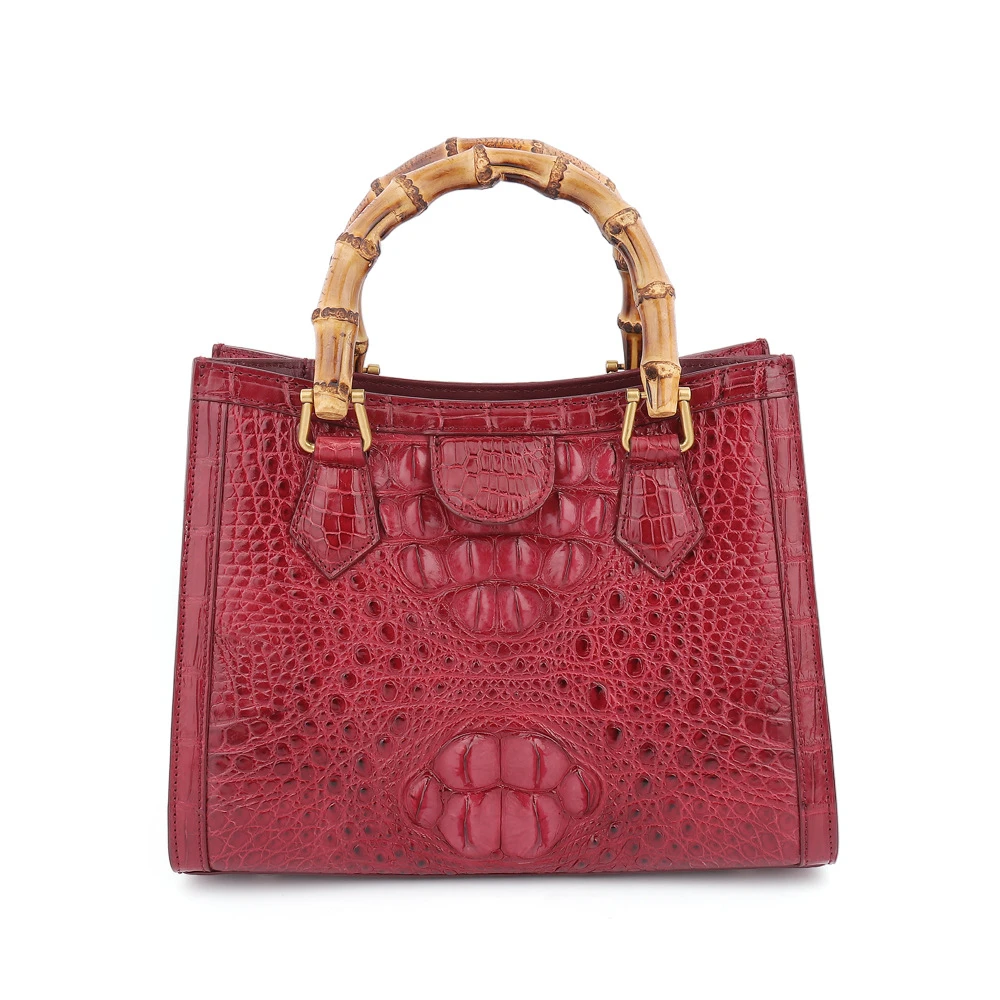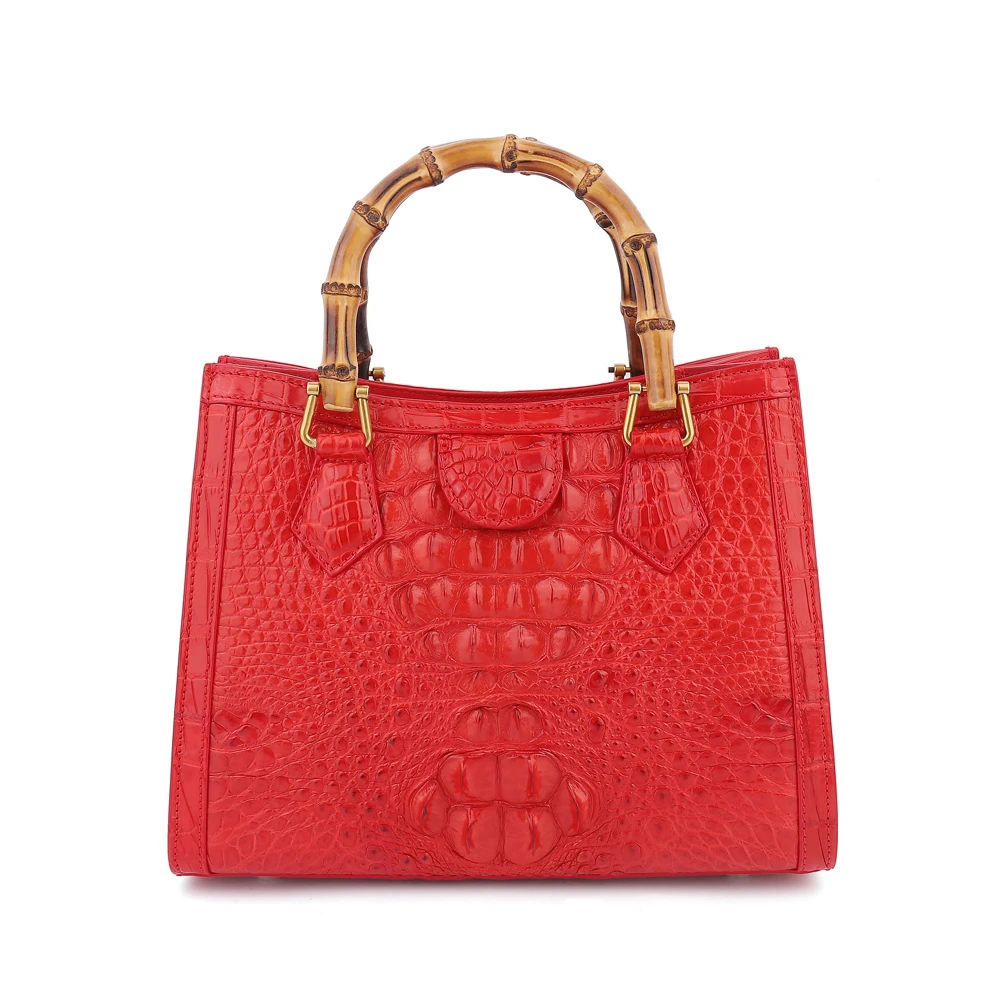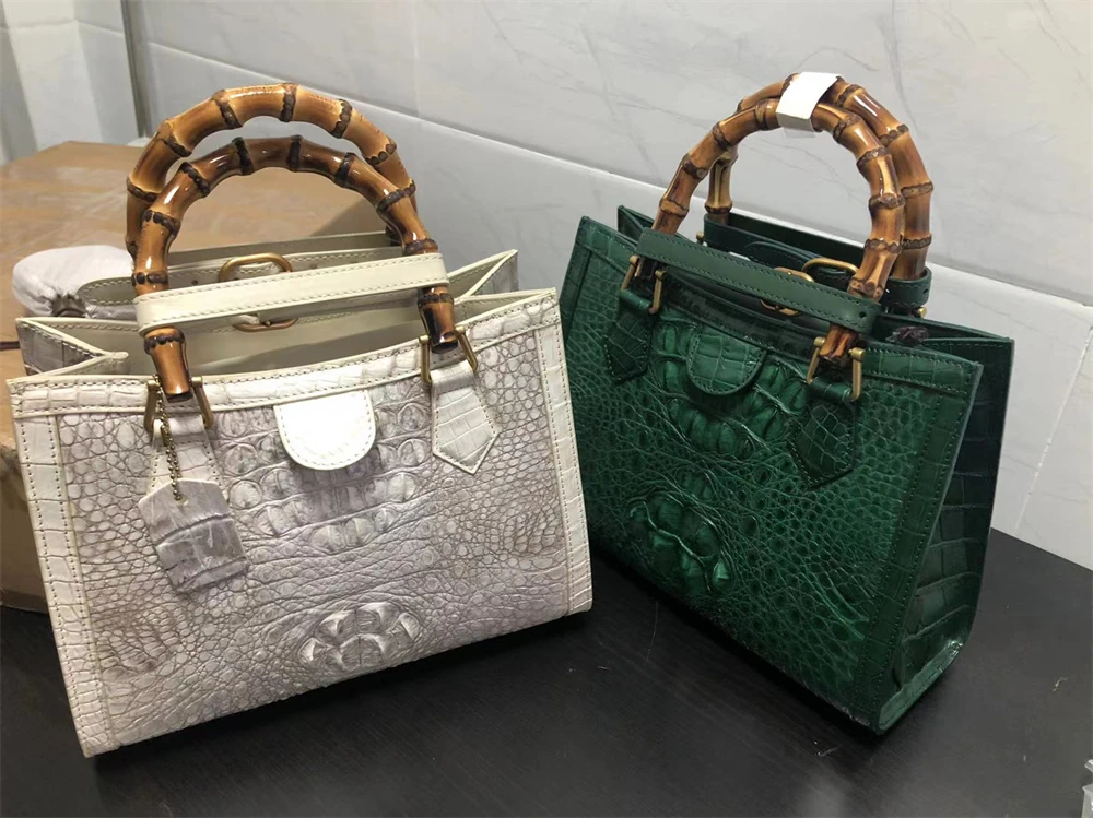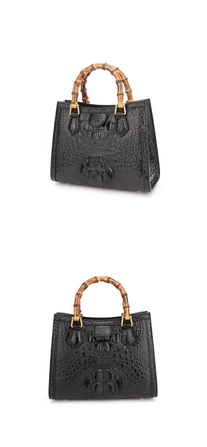 Luxury Real Genuine Women Crocodile Skin Leather Bamboo Handle Crossbody Shoulder Handbags for Women Luxury Bags