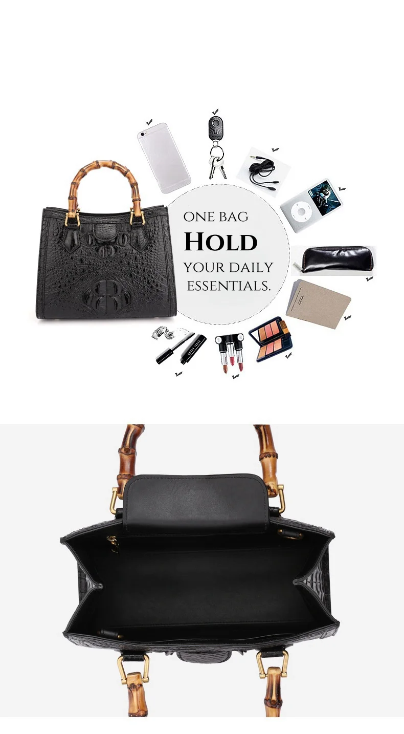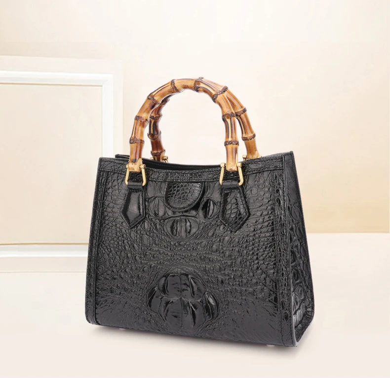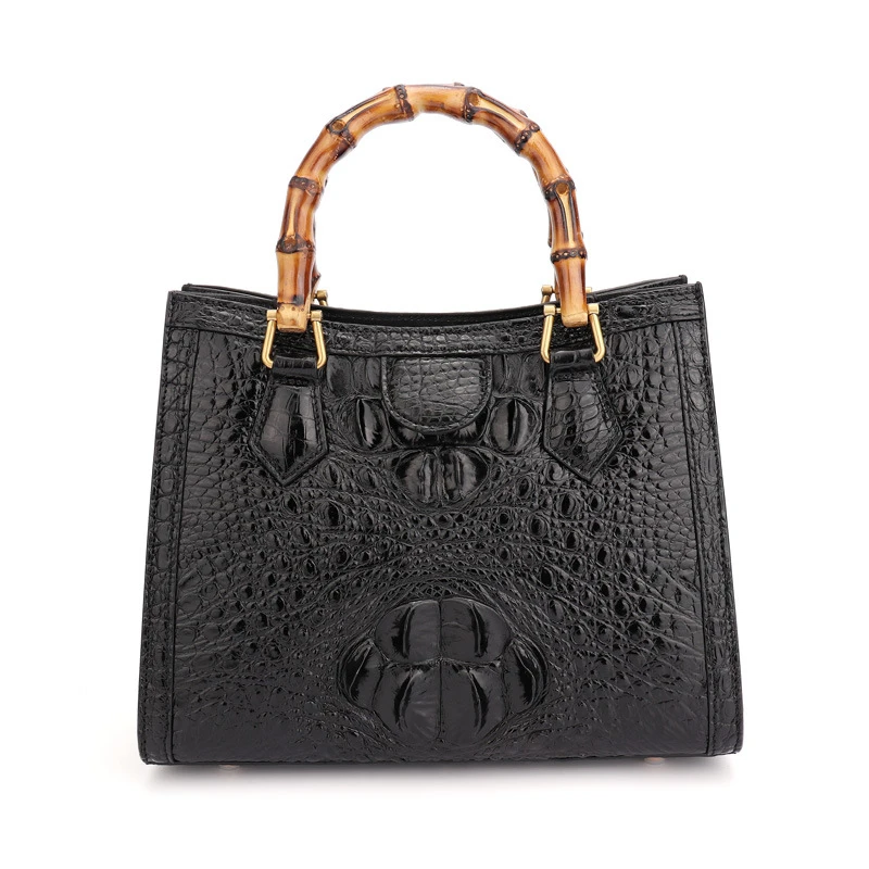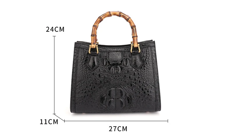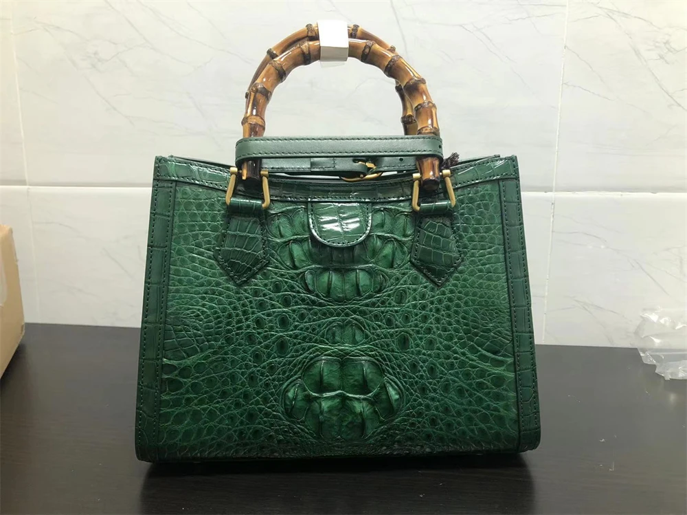 Luxury Real Genuine Women Crocodile Skin Leather Bamboo Handle Crossbody Shoulder Handbags for Women Luxury Bags