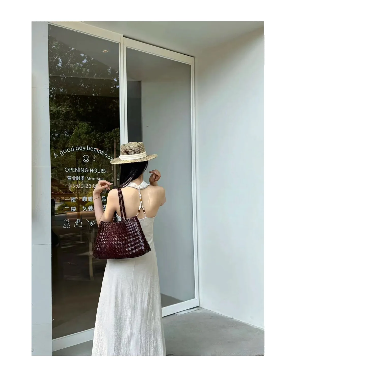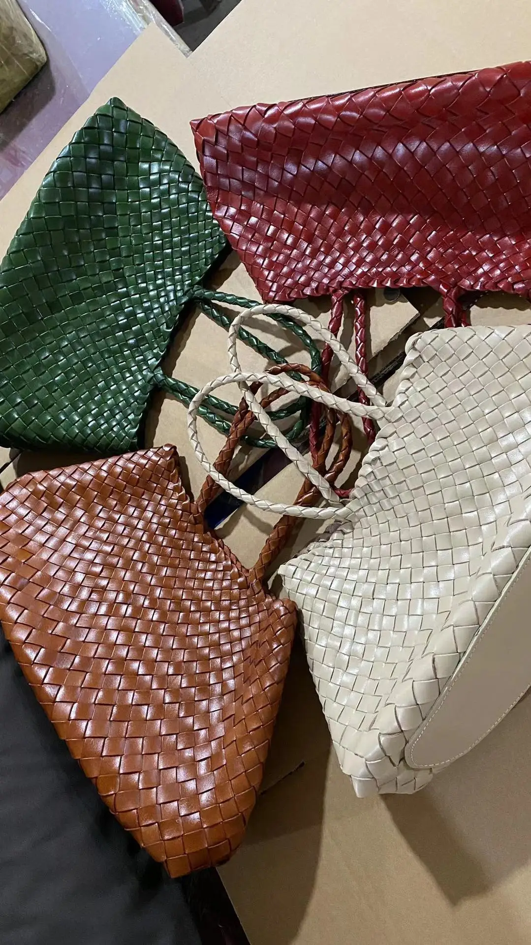 Luxury Tanned Cowhide Genuine Braided Leather Woven Shoulder Bags Large Capacity Soft Hand-woven Women's Bags with Cotton Pouch