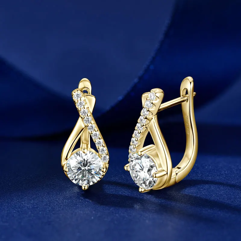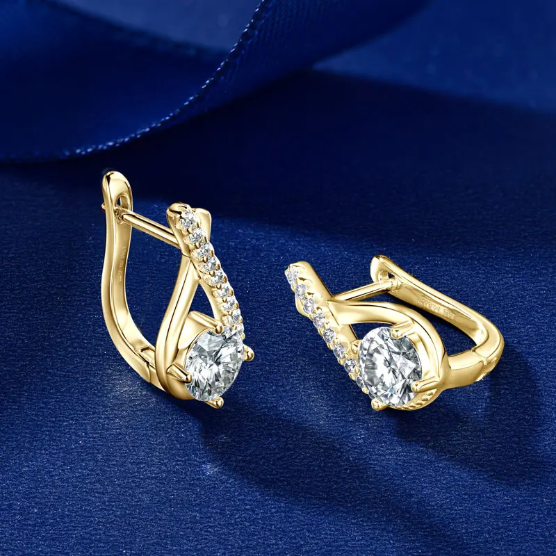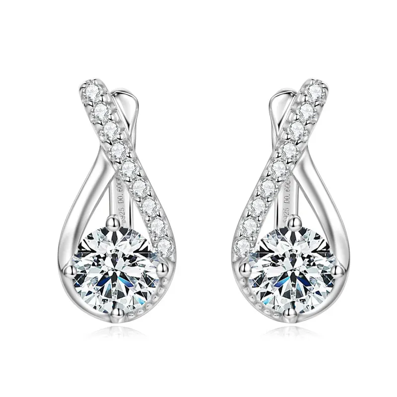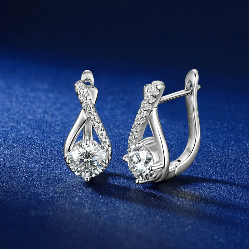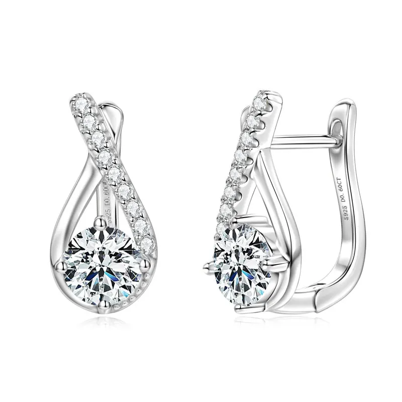 Luxury Trendy 925 Sterling Silver Fashion Female Cross Design 5.5mm 0.60ct Round Hoop Moissanite Earrings for Women
