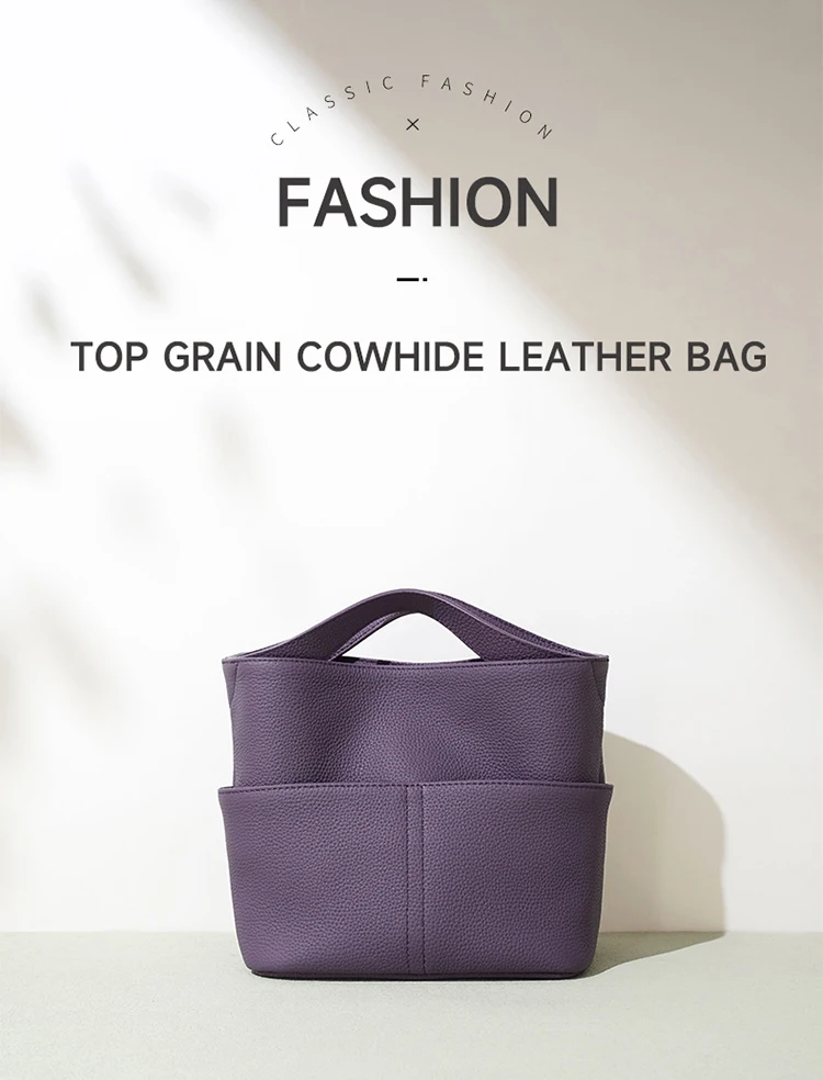 Mini Bucket Bag Women Genuine Leather Tote Bag Cowhide Real Leather Handbag for Lady Colleague Student School Bag