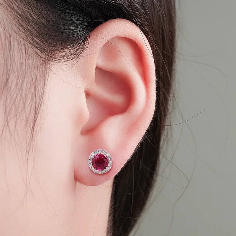 MomentWill 10K Gold Fine Earbob 5mm Round Cut Diamond Screw Back Earrings Moissanite Sapphire Emerald halo Stud Earrings